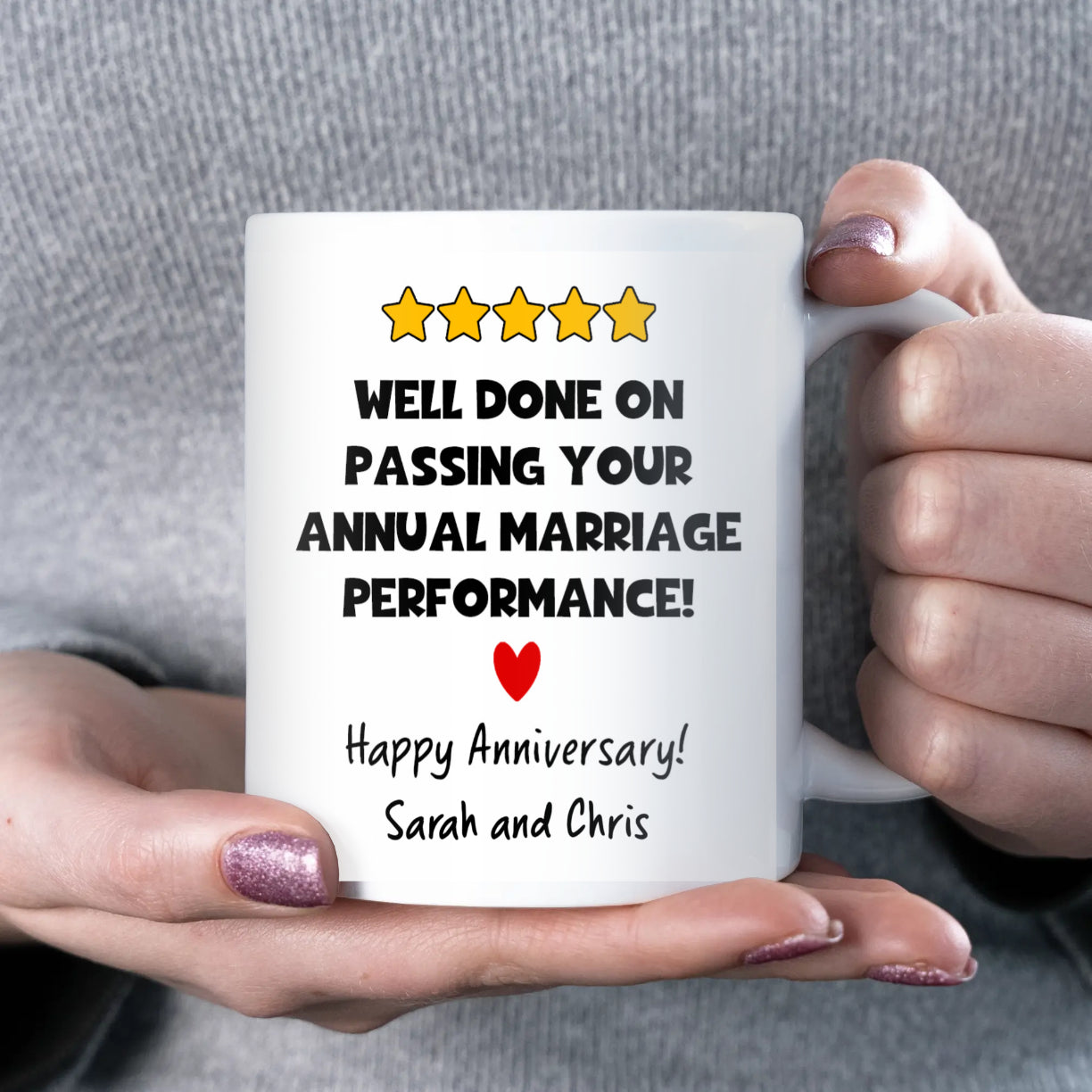 Annual Marriage Review Mug, Personalised Anniversary Performance Review, Funny Wife or Husband Anniversary Gift