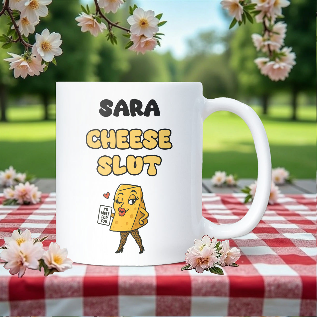 Cheese Slut Mug, Funny Cheese Lover Gift, Secret Santa Cheese Mug, Joke Gift for Daughter, Sister or Colleague