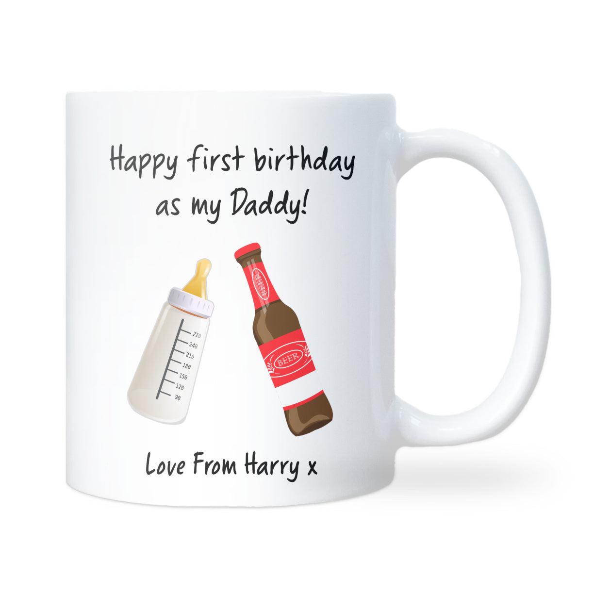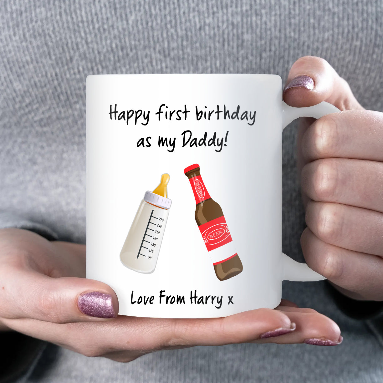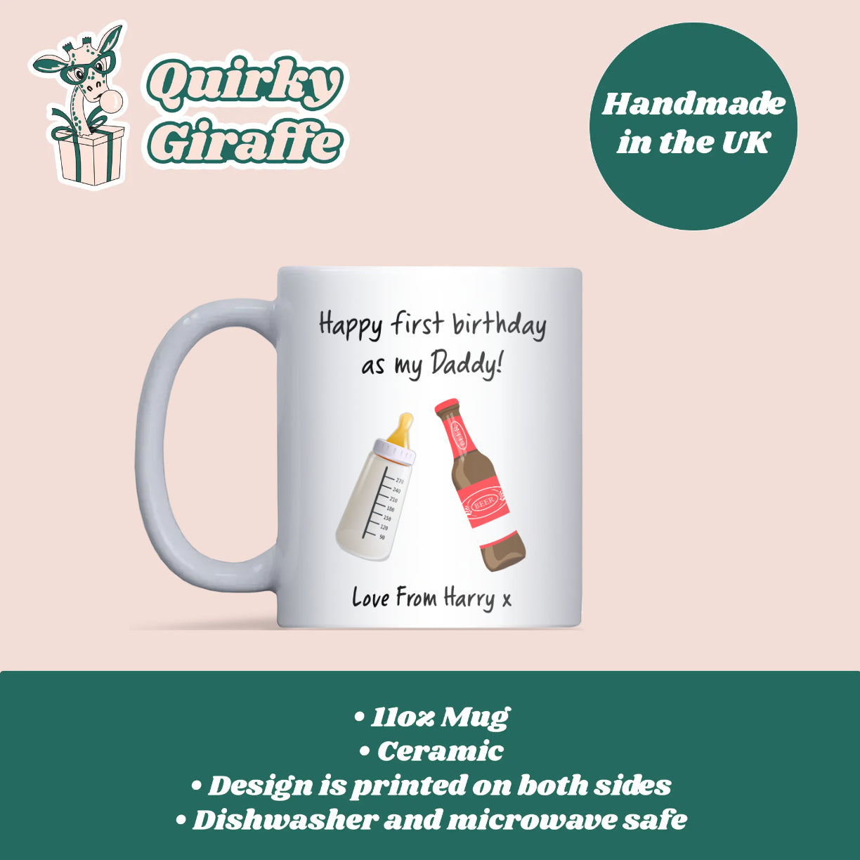 Daddy Birthday Bottle Mug, Funny First Birthday Gift for Dad, Daddy Birthday from Baby, First Time Dad Gift, Birthday Gift from Bump