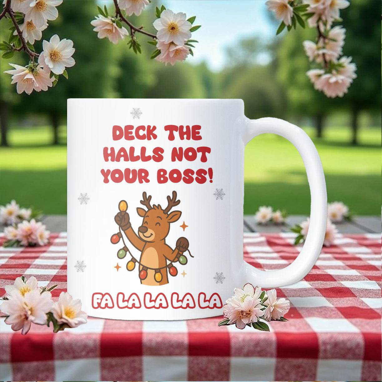 Deck the Halls Not Your Boss Mug, Funny Work Joke Christmas Gift, Secret Santa for Boss, Office Christmas Mug, Work Humour Cup