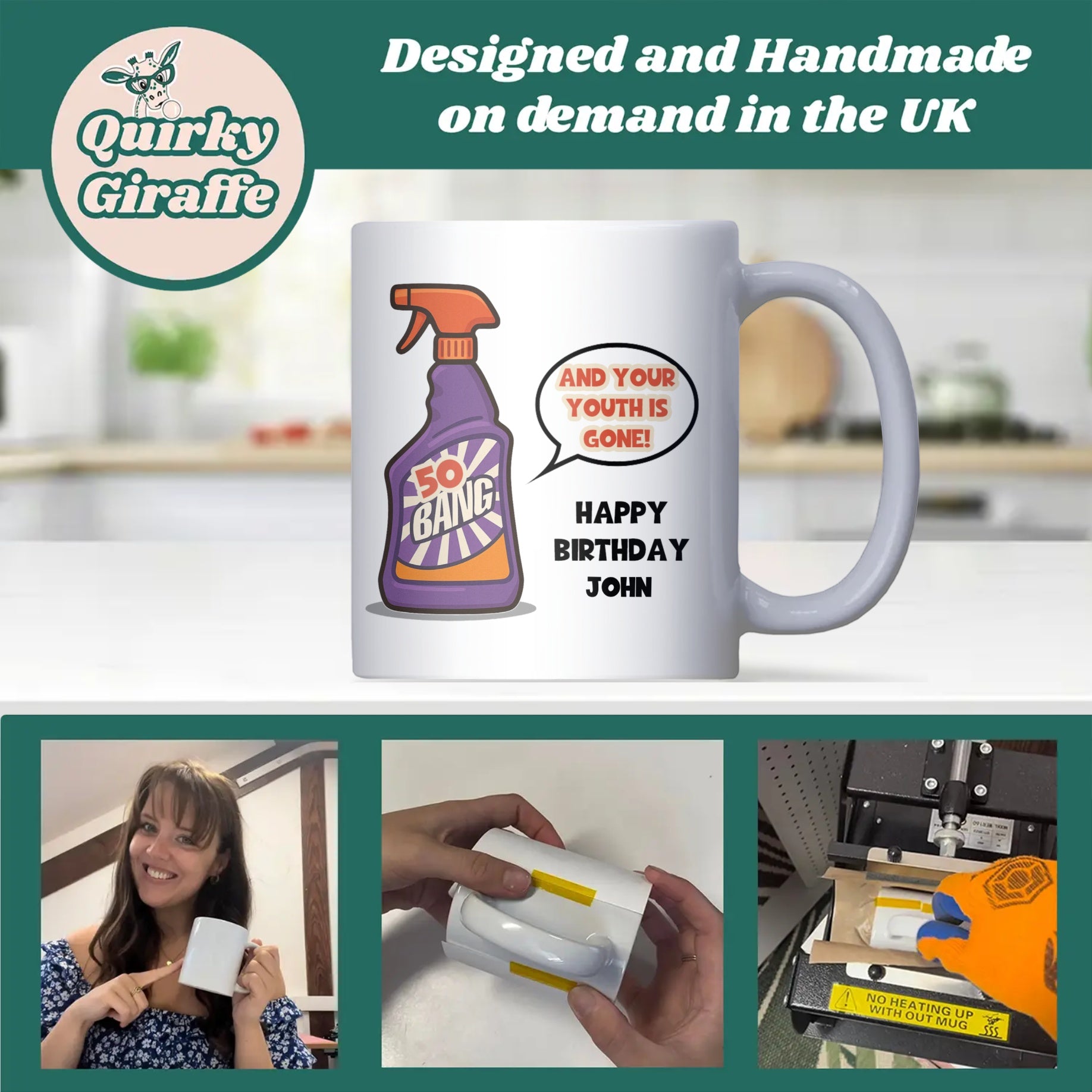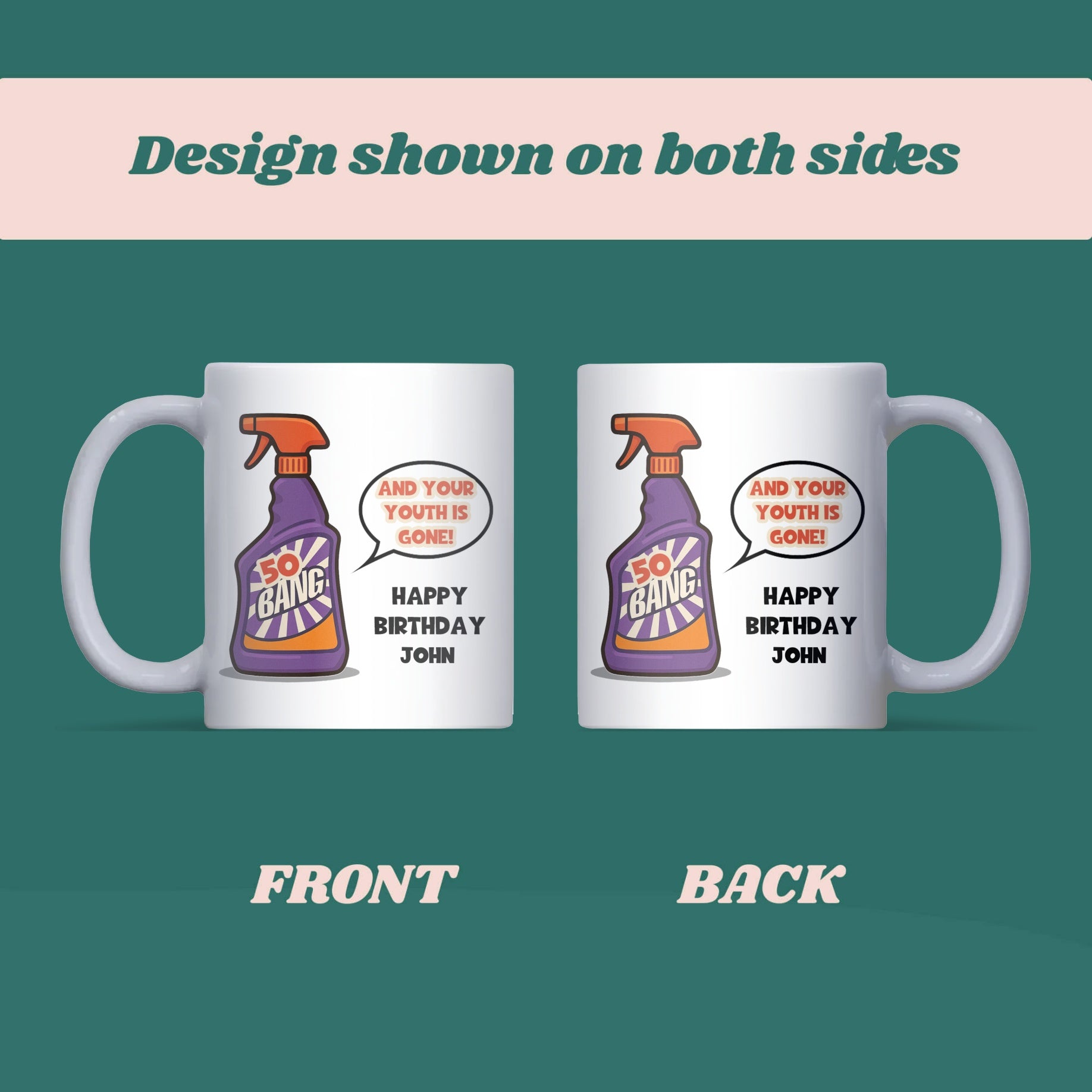 Funny 50th Birthday Mug, Bang and Your Youth is Gone Mug, Personalised 50th Birthday Gift for Him or Her, Fifty Birthday Novelty Mug