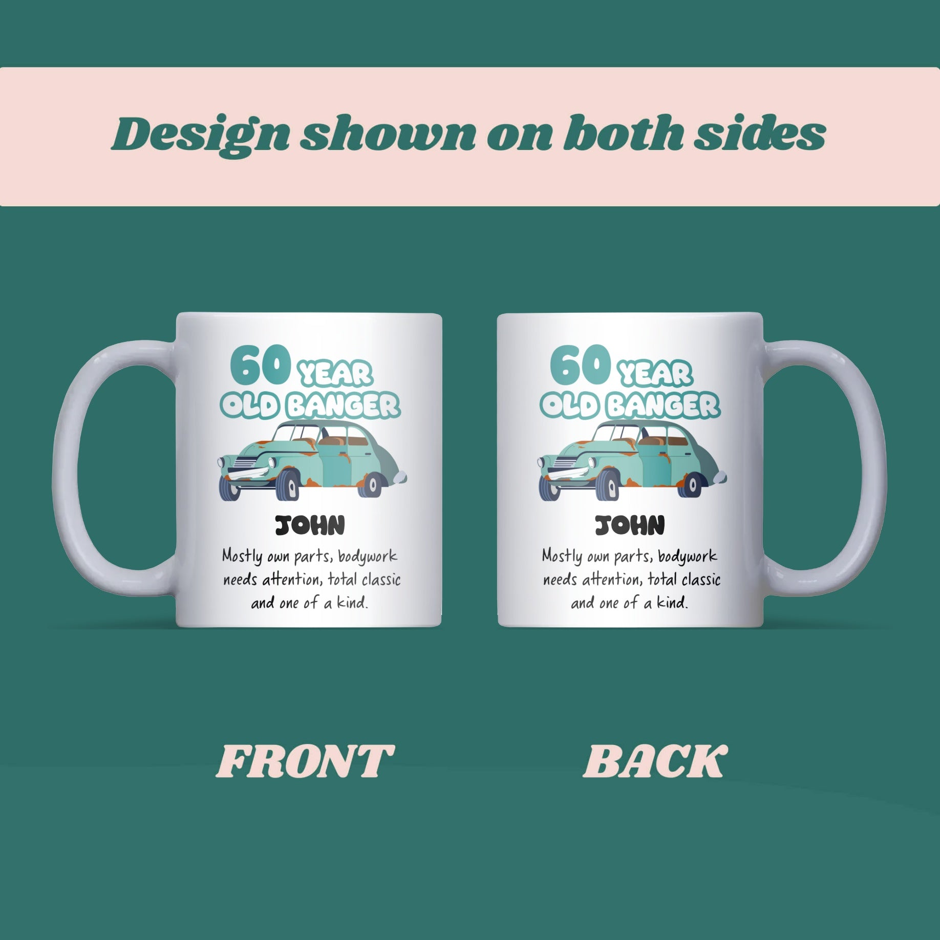 Funny 60 Year Old Banger Mug, Joke 60th Birthday Gift for Dad, Grandad, Husband or Uncle, Personalised 60th Birthday Cup