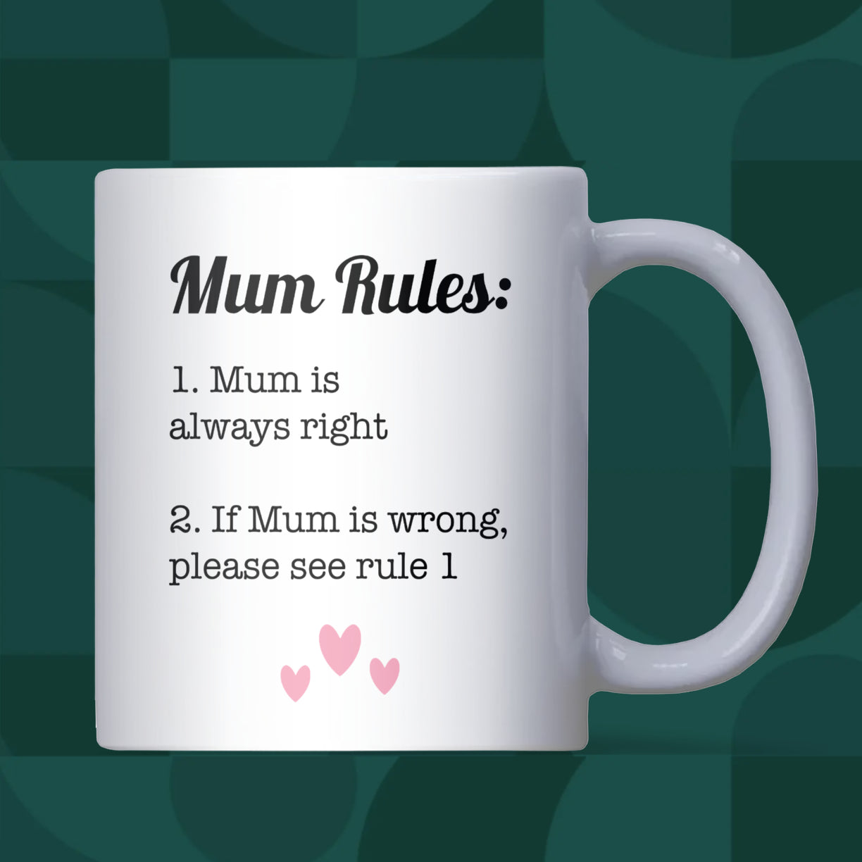 Funny Mum Rules Mug, Mum Birthday Gift, Mother’s Day Mug, Funny Gift for Mum, Joke Christmas Gift for Mum