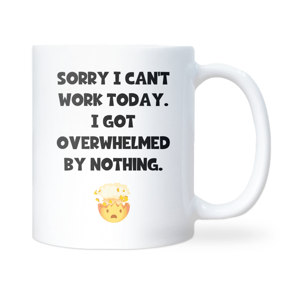Perfect for stressed-out colleagues or friends, this Funny Overwhelmed Joke Mug delivers a playful reminder to take a breather. Ideal for secret Santa, office gifting, or as a lighthearted mental health joke. Dishwasher and microwave safe.