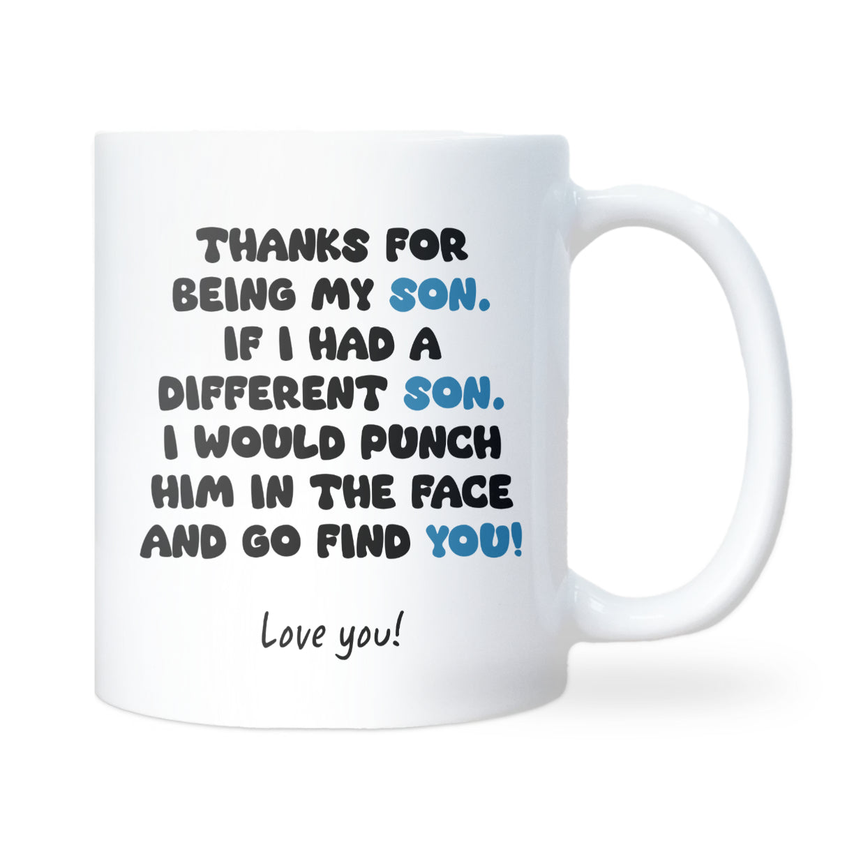 Celebrate your son with this Funny Son Punch mug — perfect for milestone birthdays like 18th or 21st, graduation, or just to show your pride. A humorous and heartfelt gift that makes any occasion memorable.