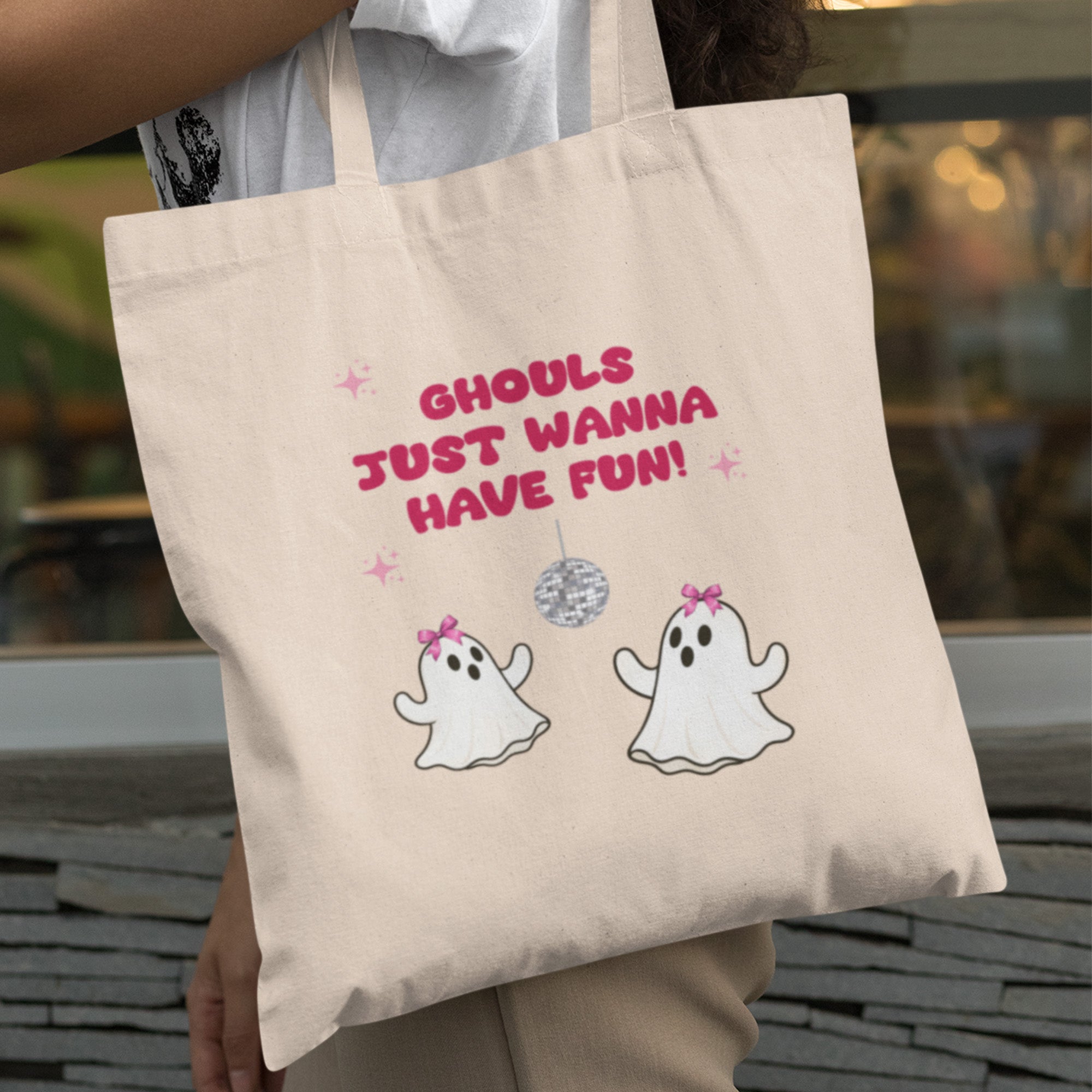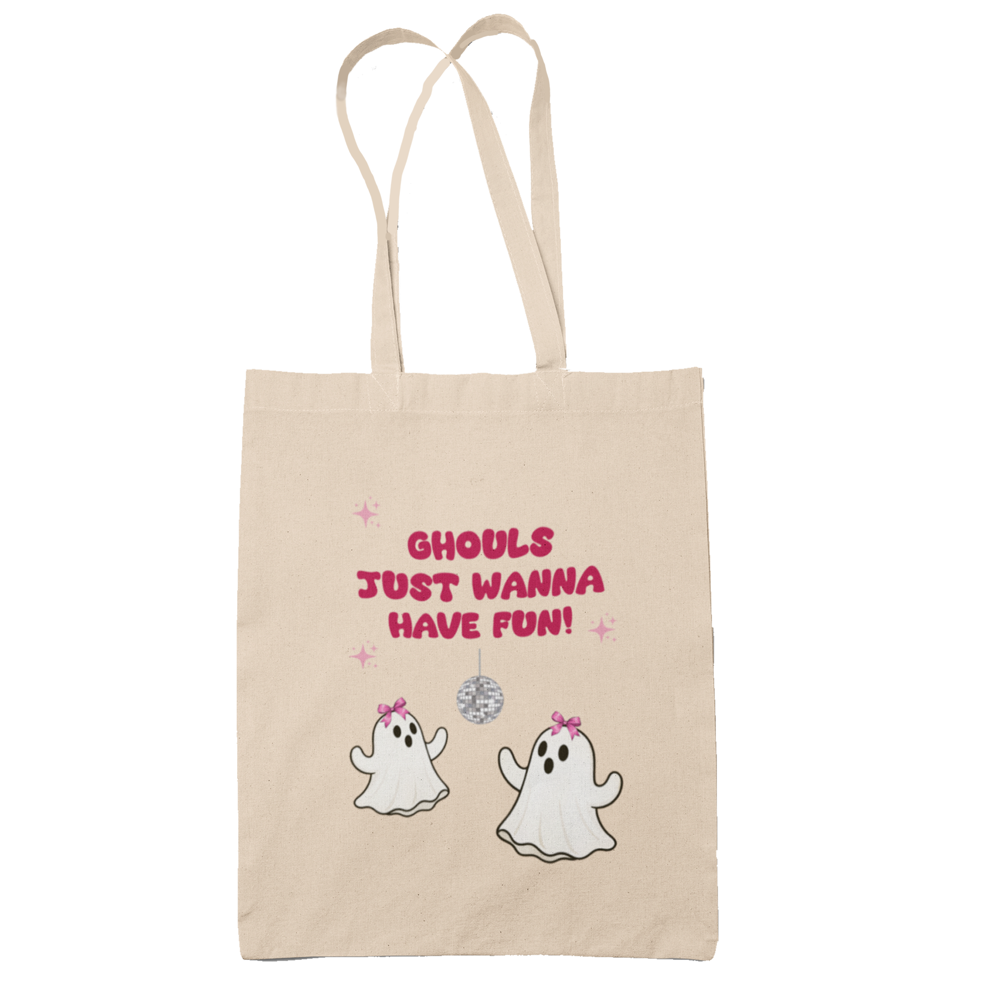Bring the spooky vibes wherever you go with this Ghouls Just Wanna Have Fun tote bag! Featuring a cute ghost design, it’s the perfect Halloween accessory for the season. Ideal for carrying everyday essentials, trick-or-treating, or filling as part of a Boo Basket or Boo Box gift for your girlfriend, bestie, daughter or wife.