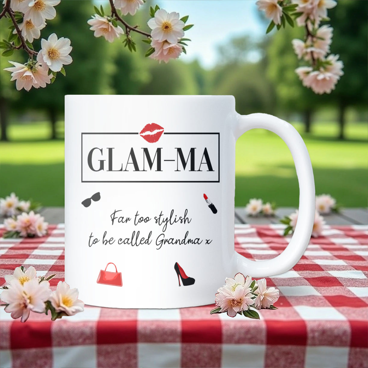 Glam-Ma Not Grandma Mug, Funny Grandma Gift, Grandma to Be Christmas Gift, Fashionable Granny Gift, Birthday Gift for Glam-Ma, Mother’s Day Gift