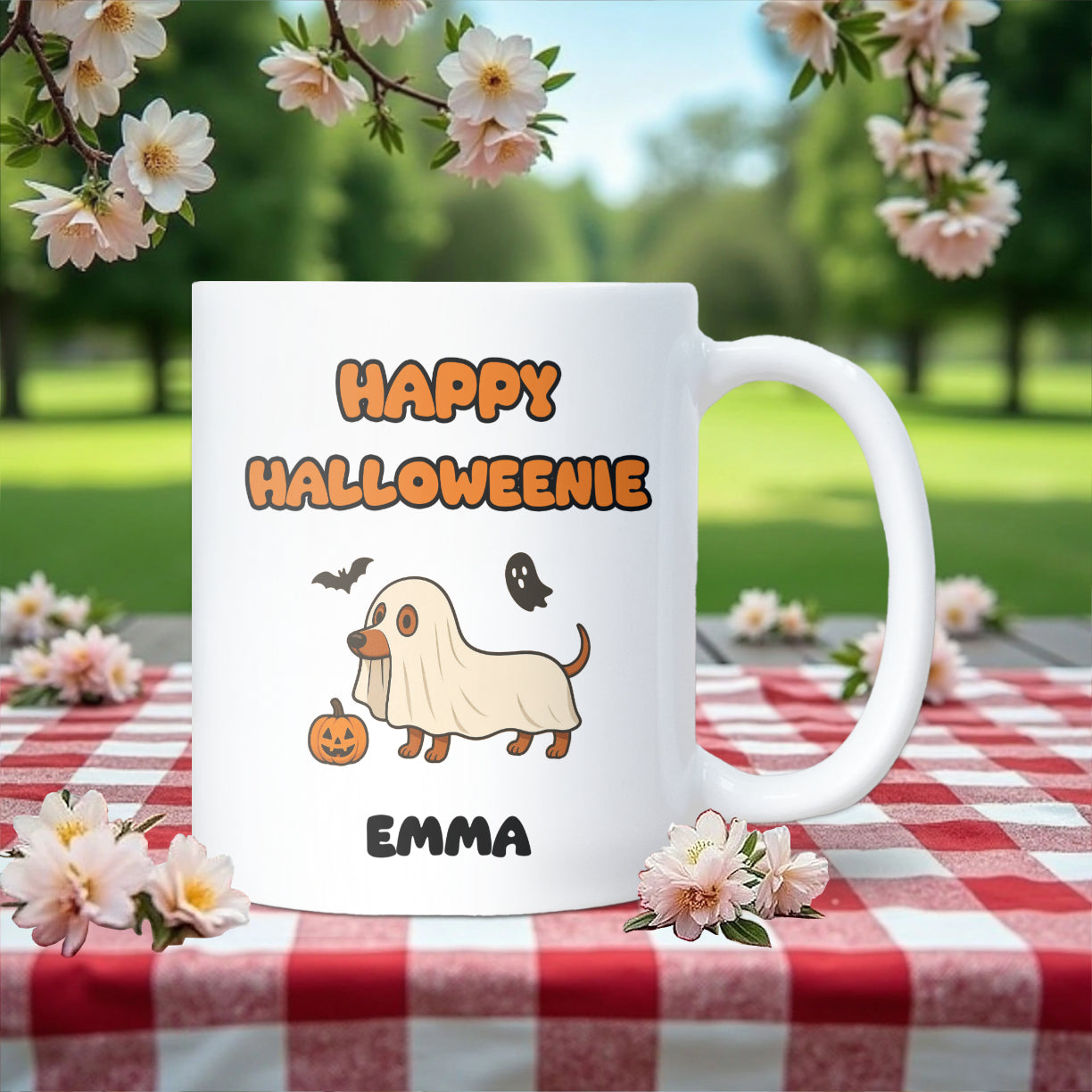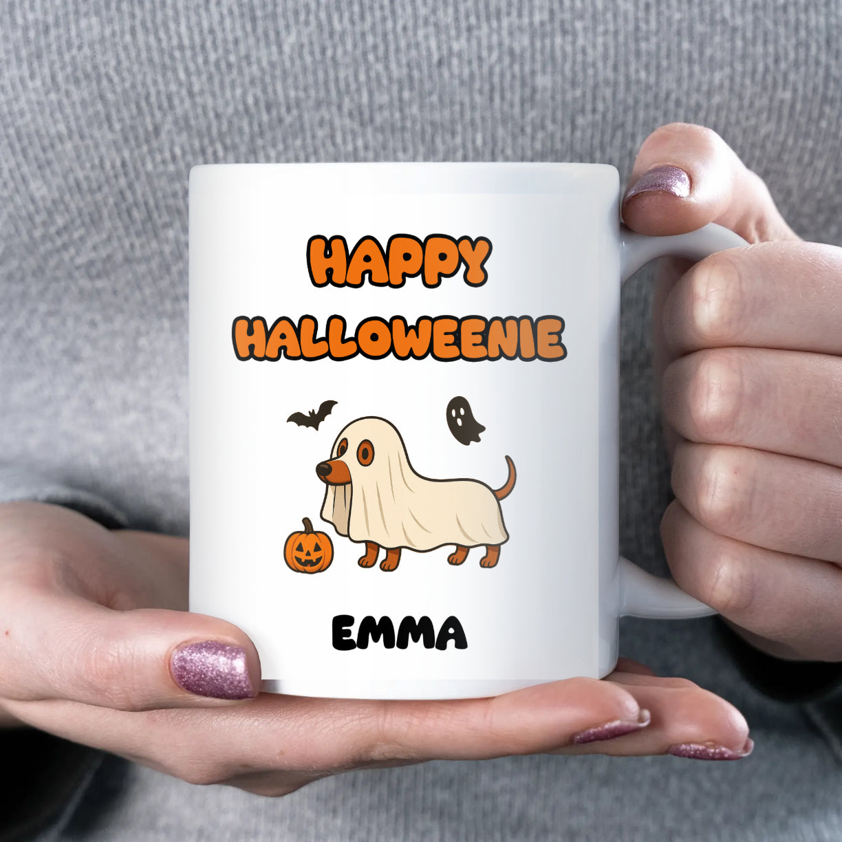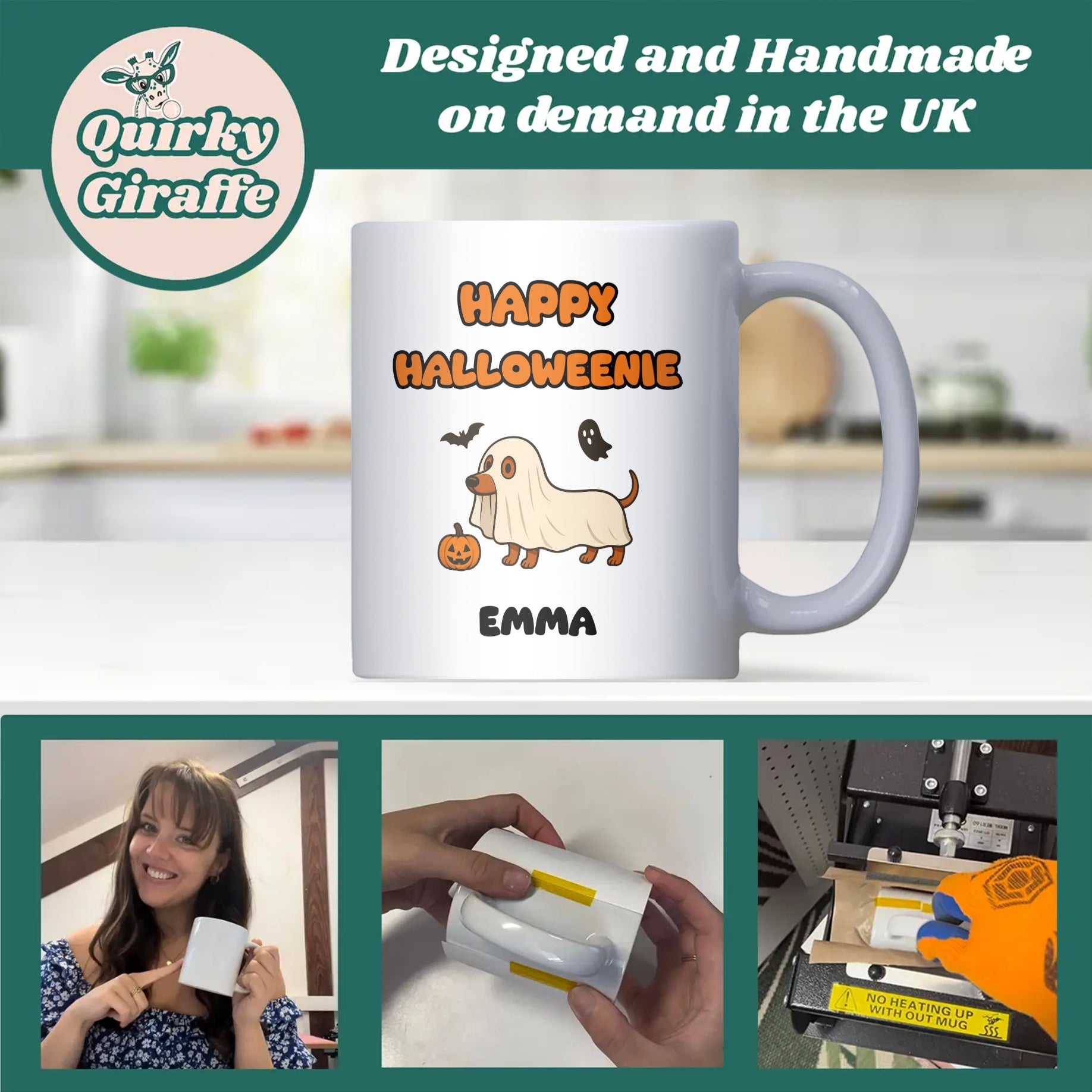 Happy Halloweenie Sausage Dog Mug, Funny Dachshund Halloween Gift, Boo Basket Mug for Dog Mum, Sausage Dog Lover Birthday Gift