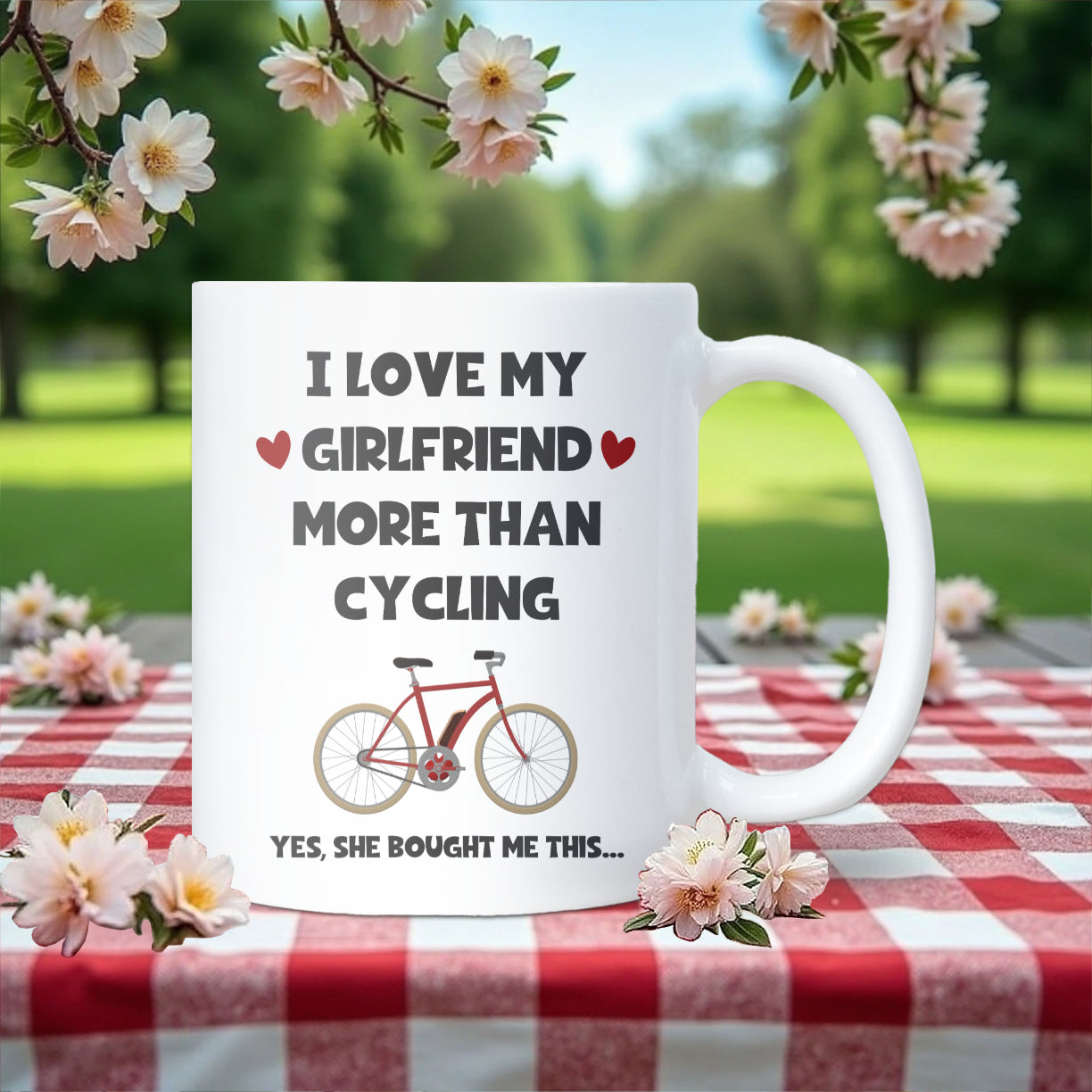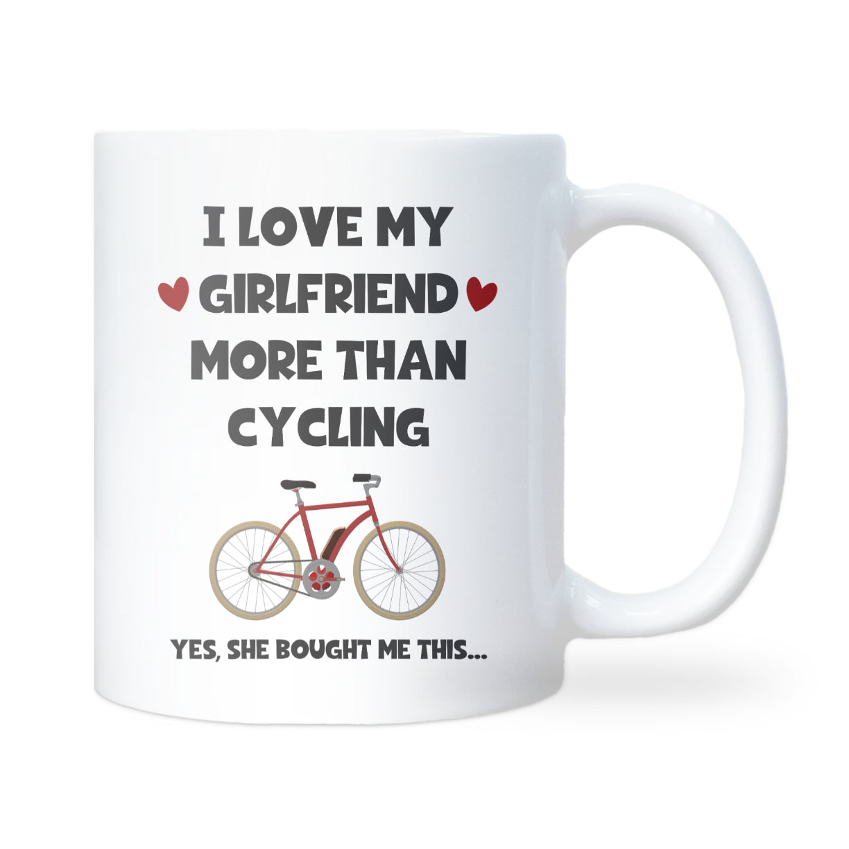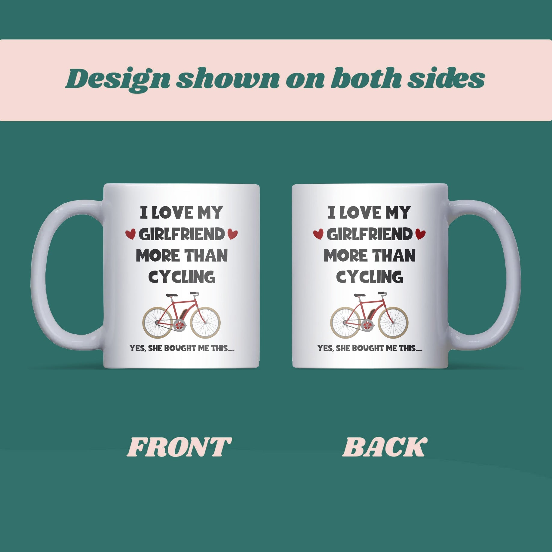I Love My Girlfriend More Than Cycling Mug, Funny Cycling Gift, Valentine’s Gift for Cyclist Boyfriend, Anniversary Gift for Cycling Boyfriend, Christmas Gift for Cyclist