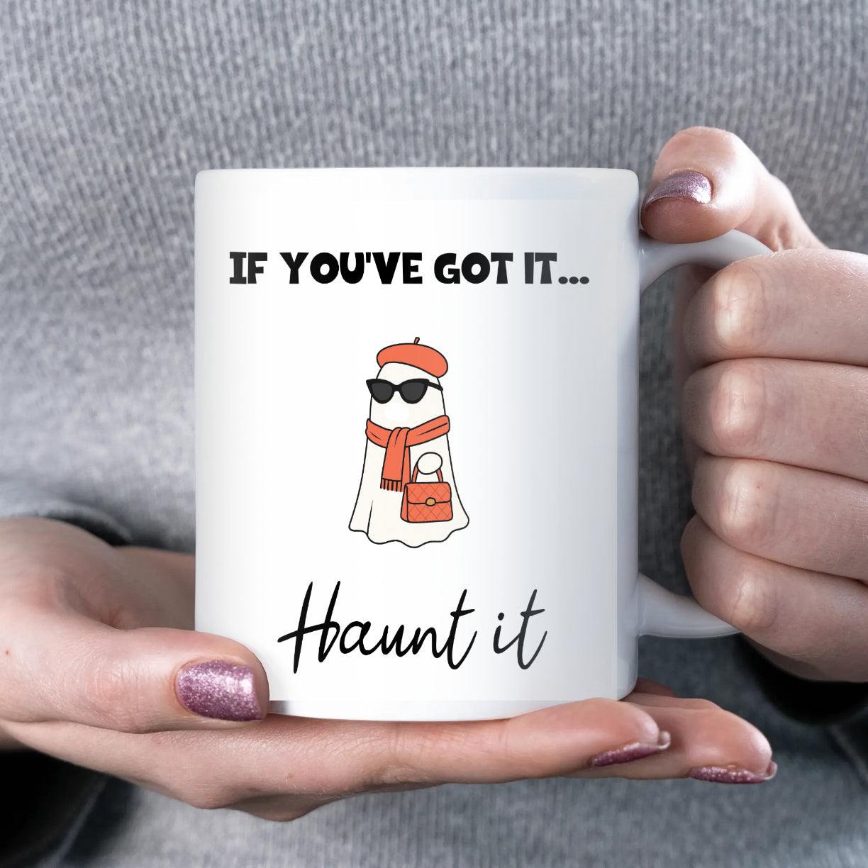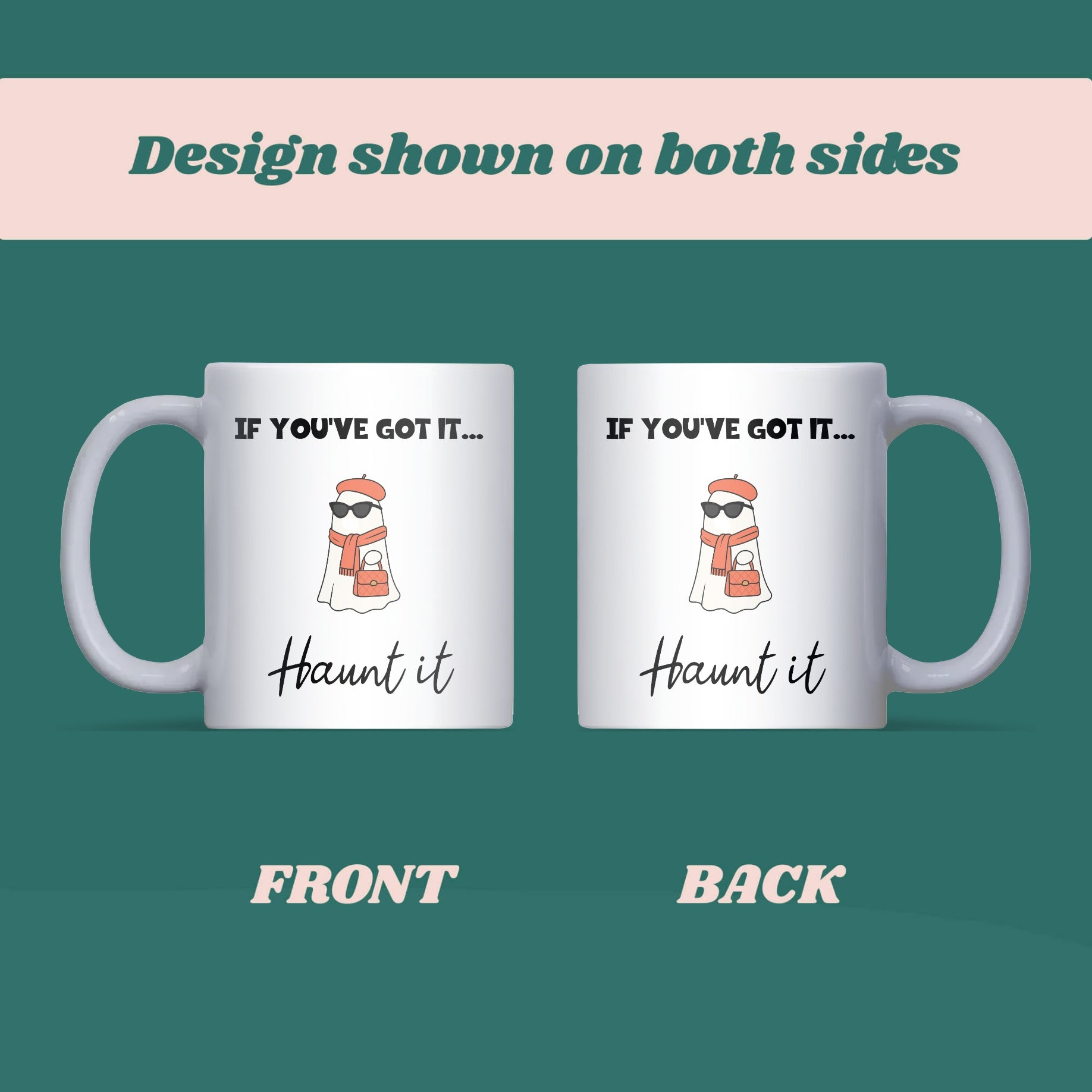 If You’ve Got It Haunt It Mug, Funny Ghost Halloween Mug, Boo Basket Gift for Her, Spooky Season Coffee Cup, Girlfriend Halloween Gift