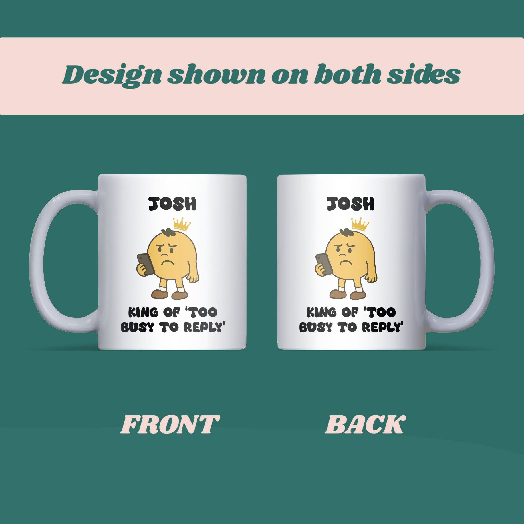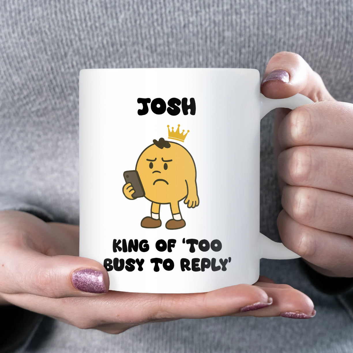 A hilarious mug for the king who’s always “too busy to reply”. Perfect for birthdays, Father’s Day, Valentine’s Day, or as a funny gift for husbands, boyfriends, sons, or dads who are terrible at replying.