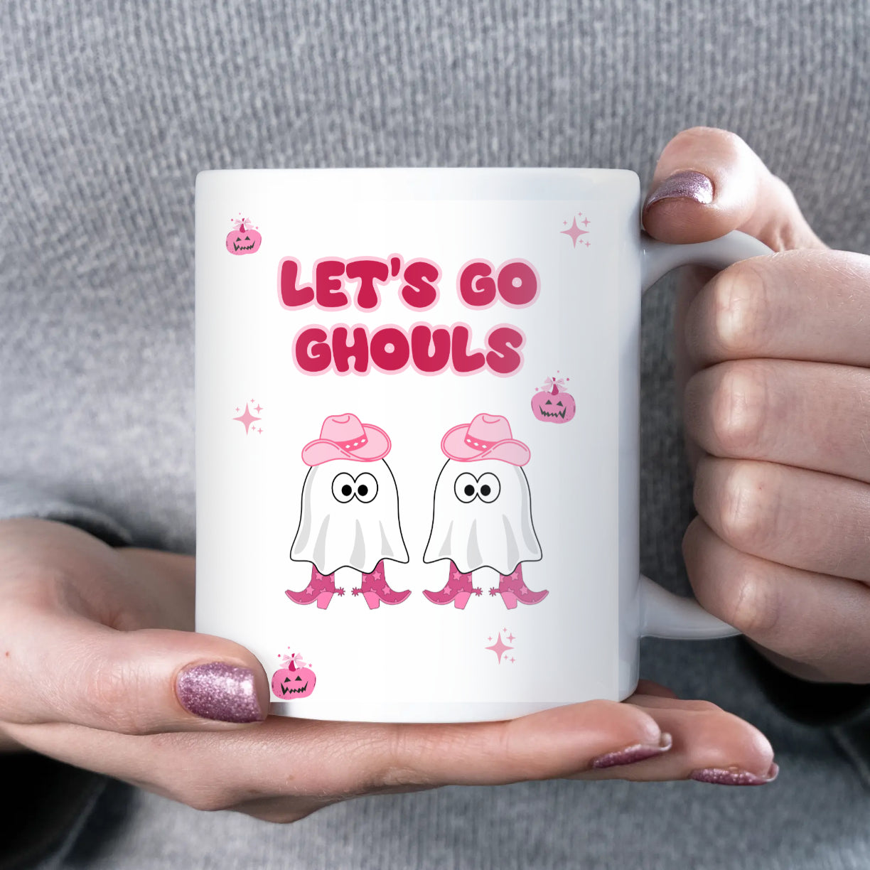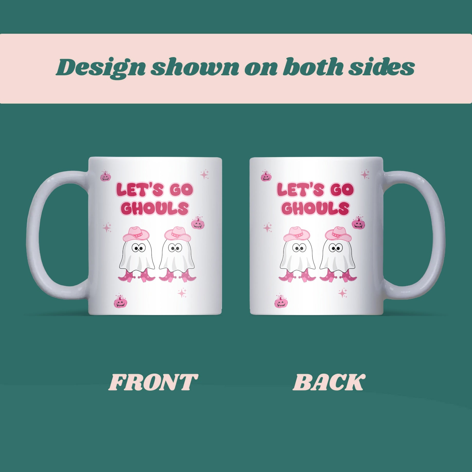 Let’s Go Ghouls Mug, Funny Halloween Mug for Her, Pink Cowgirl Ghost Cup, Girly Spooky Season Coffee Mug, Cute Halloween Gift for Bestie