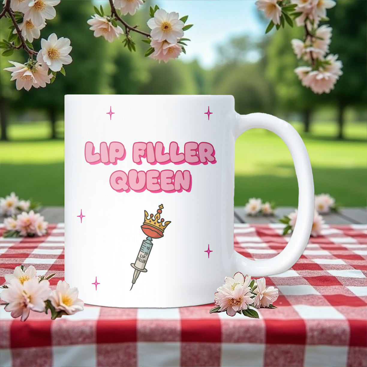 Lip Filler Queen Mug, Funny Aesthetic Mug, Cosmetic Treatment Gift for Her, Filler Funny Mug, Plastic Surgery Humor Mug, Lip Plumping Gift