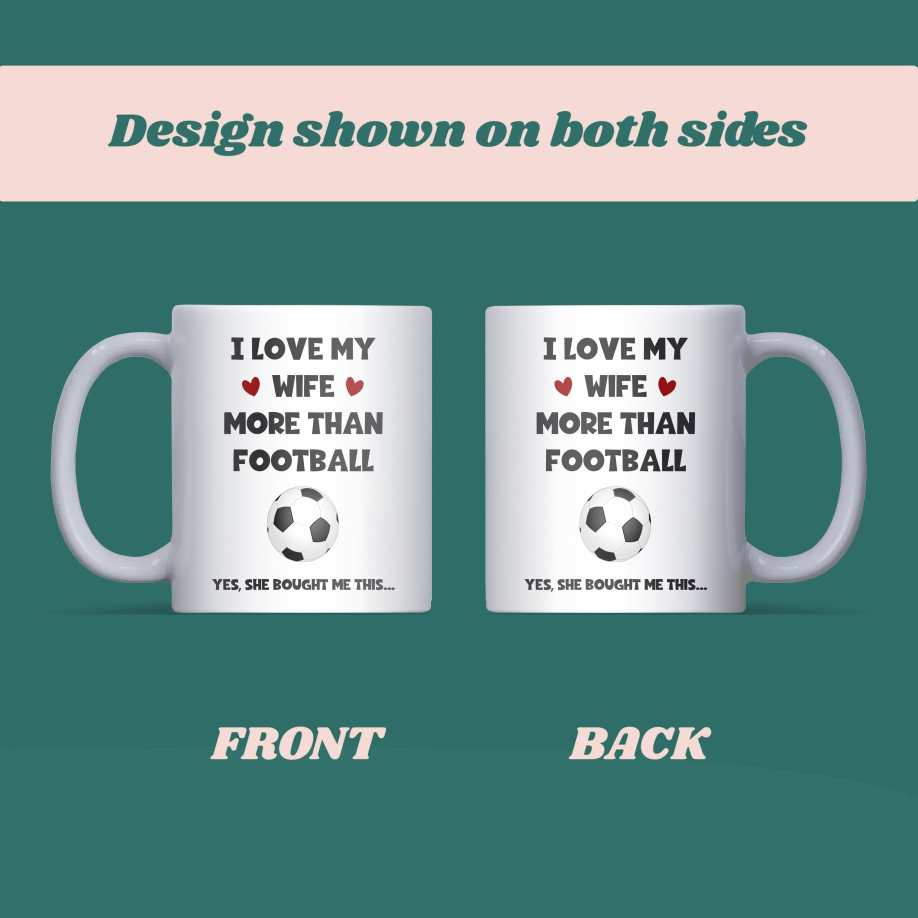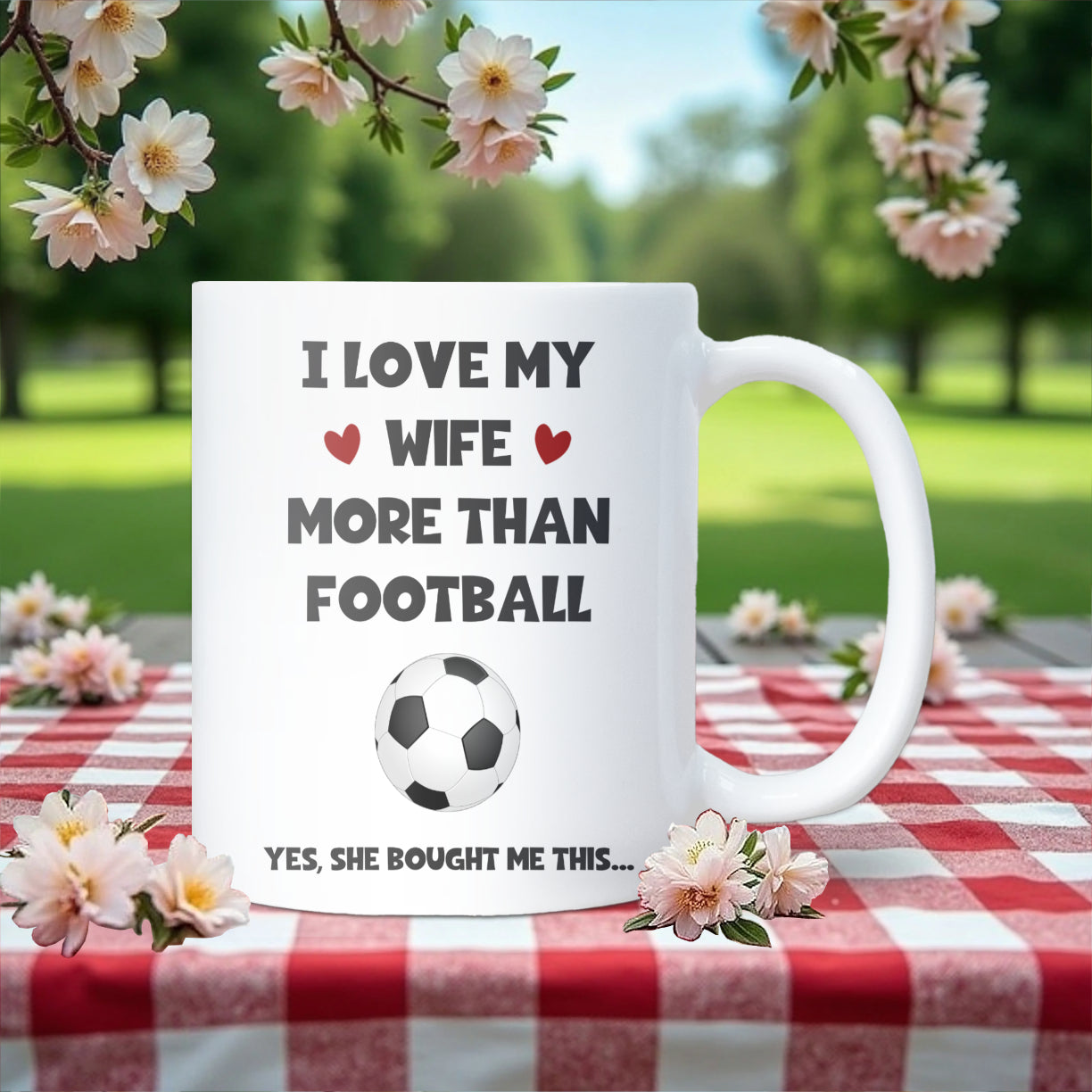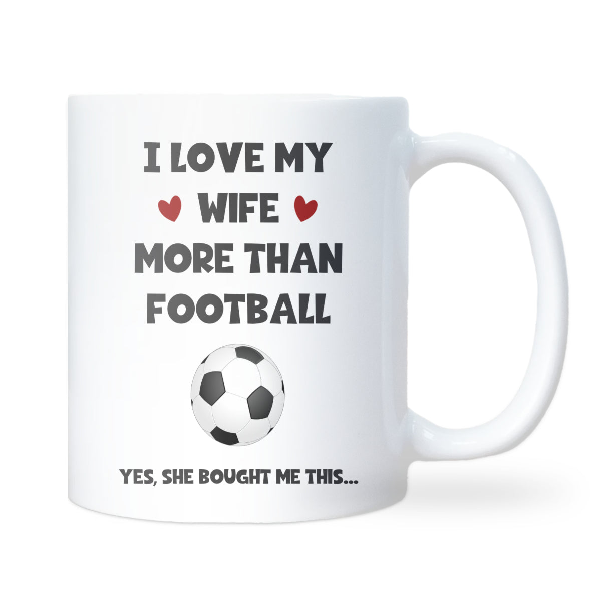 This “Love My Wife More Than Football” mug is the perfect funny gift for any football-mad husband or boyfriend. Ideal for birthdays, anniversaries, or Christmas, it’s a cheeky mug that celebrates love and banter in equal measure — even on match day!