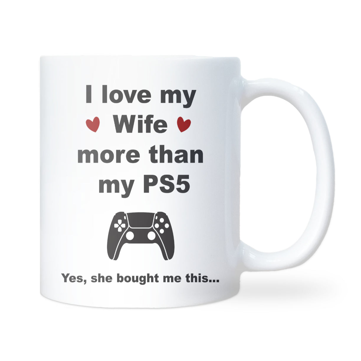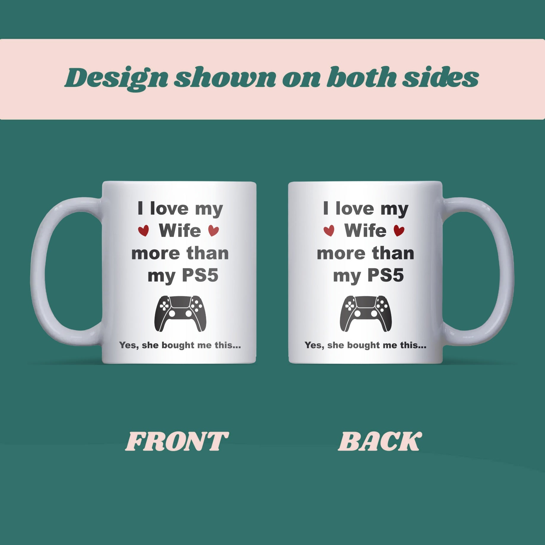 Love My Wife More Than My PS5 Mug, Funny Husband Gift, Gamer Husband Birthday Gift, PS5 Anniversary Gift, Funny Christmas Gift for Him