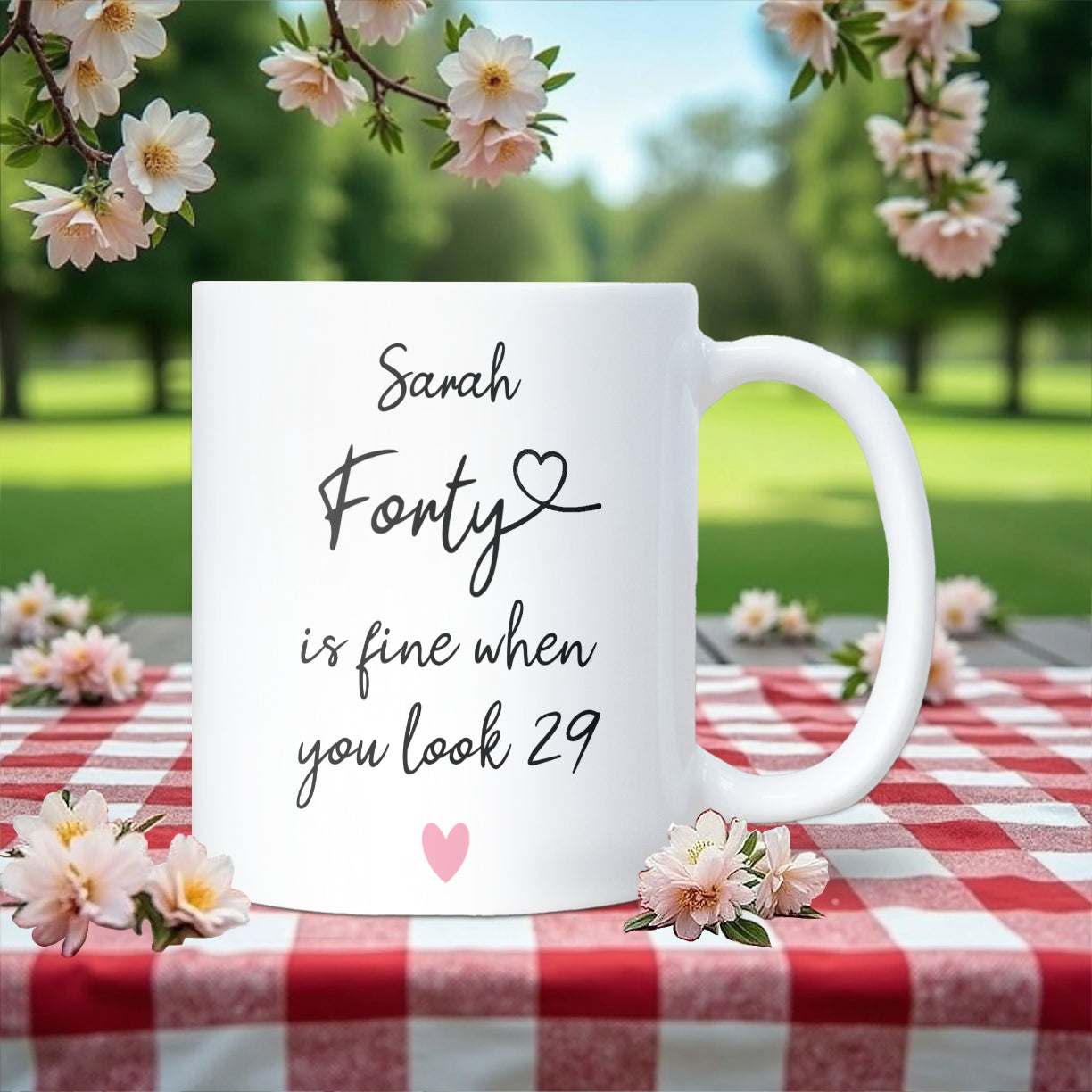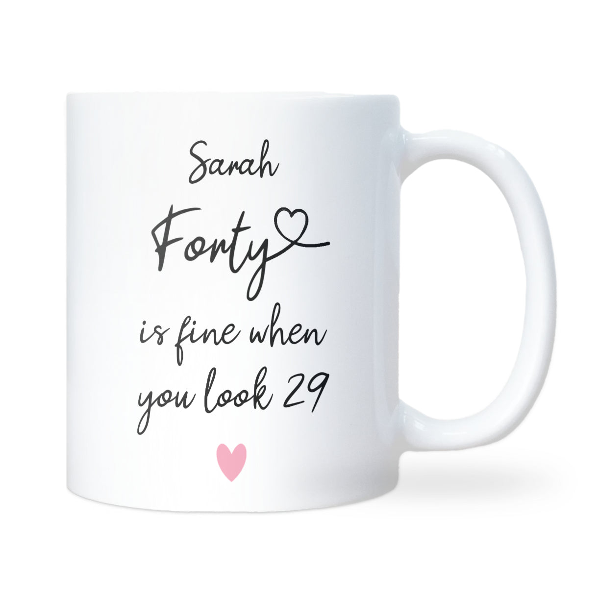 Personalised 40th Birthday Mug for Women, Forty is Fine When You Look 29, Funny 40th Birthday Gift for Her, Milestone Birthday Cup