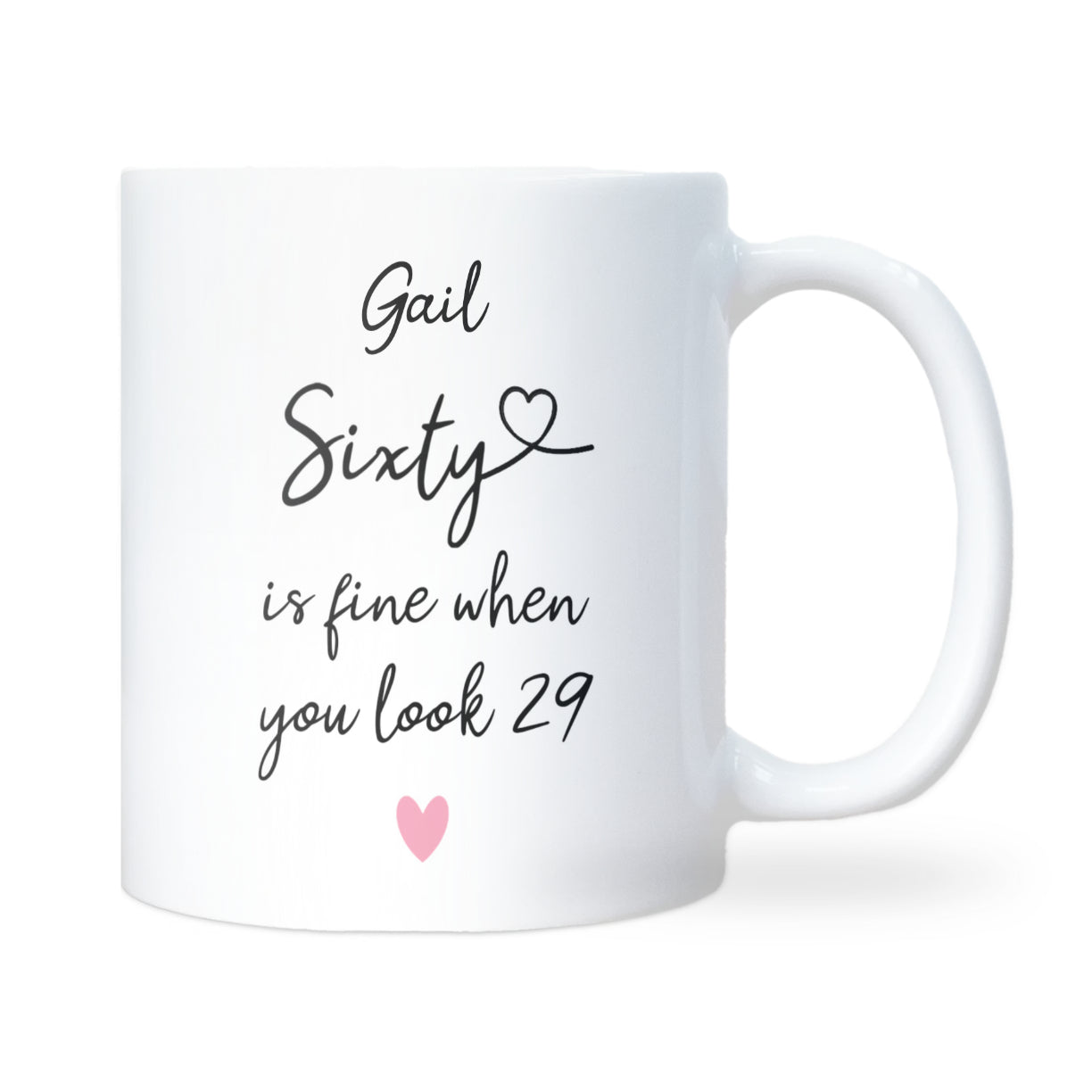 Personalised 60th Birthday Mug for Her, Sixty is Fine When You Look 29, Funny 60th Birthday Gift for Her, Milestone Birthday Cup