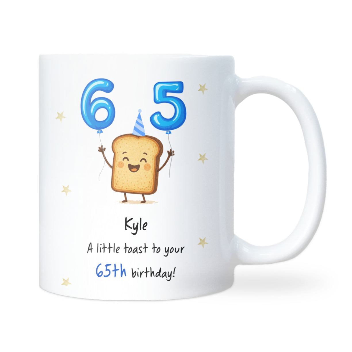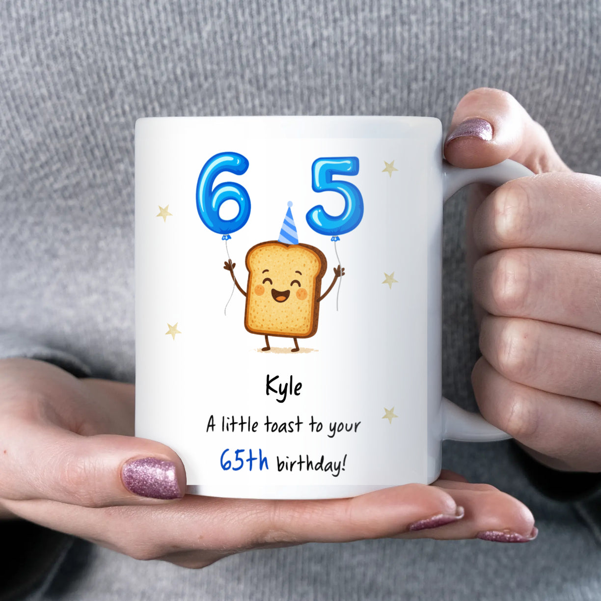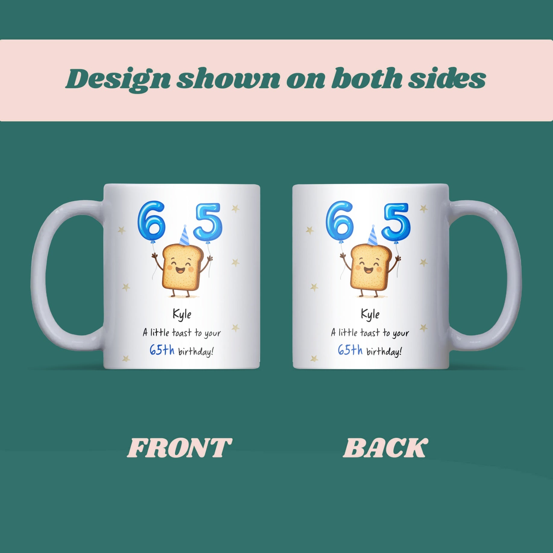 Personalised 65th Toast Birthday Mug, Funny Mum 65th Birthday Gift, Dad 65th Birthday Keepsake, Grandma 65th Present, Grandad 65th Gift