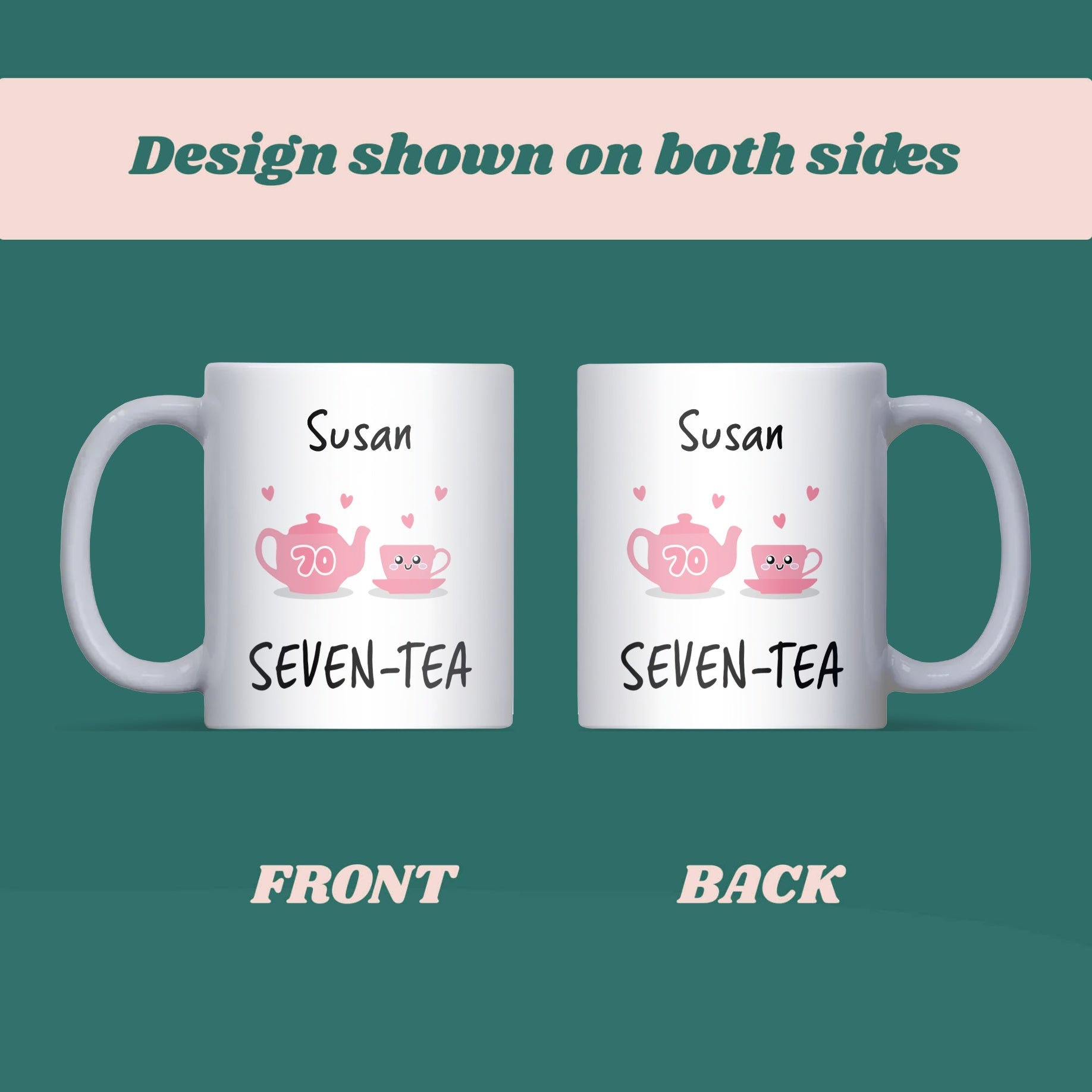 Personalised 70th Birthday Seven-Tea Mug, Funny Cute Birthday Gift for Grandma, Mum 70th Birthday Gift, Friend 70th Gift, 70th Present