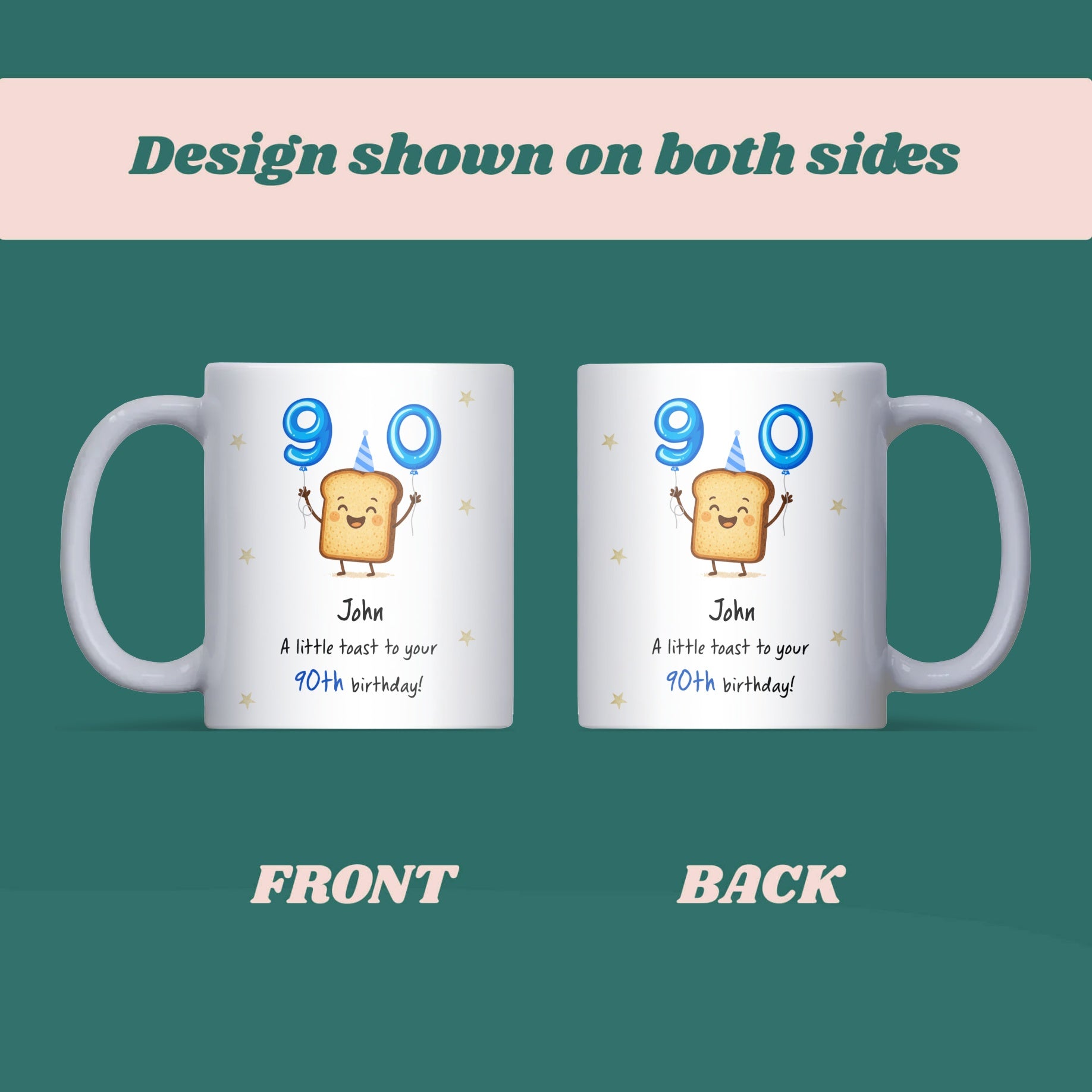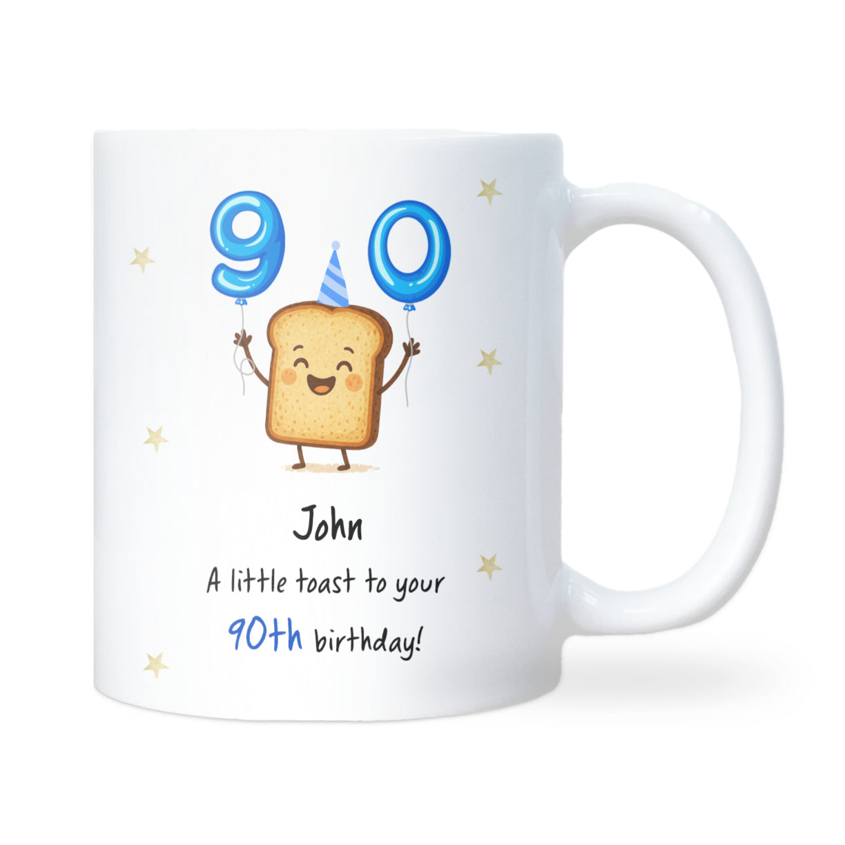 Mark this incredible milestone with a smile! This personalised 90th toast birthday mug is a fun yet thoughtful keepsake for celebrating a special 90th birthday. A perfect gift for grandma, grandad, mum, dad, or any loved one reaching this amazing age.