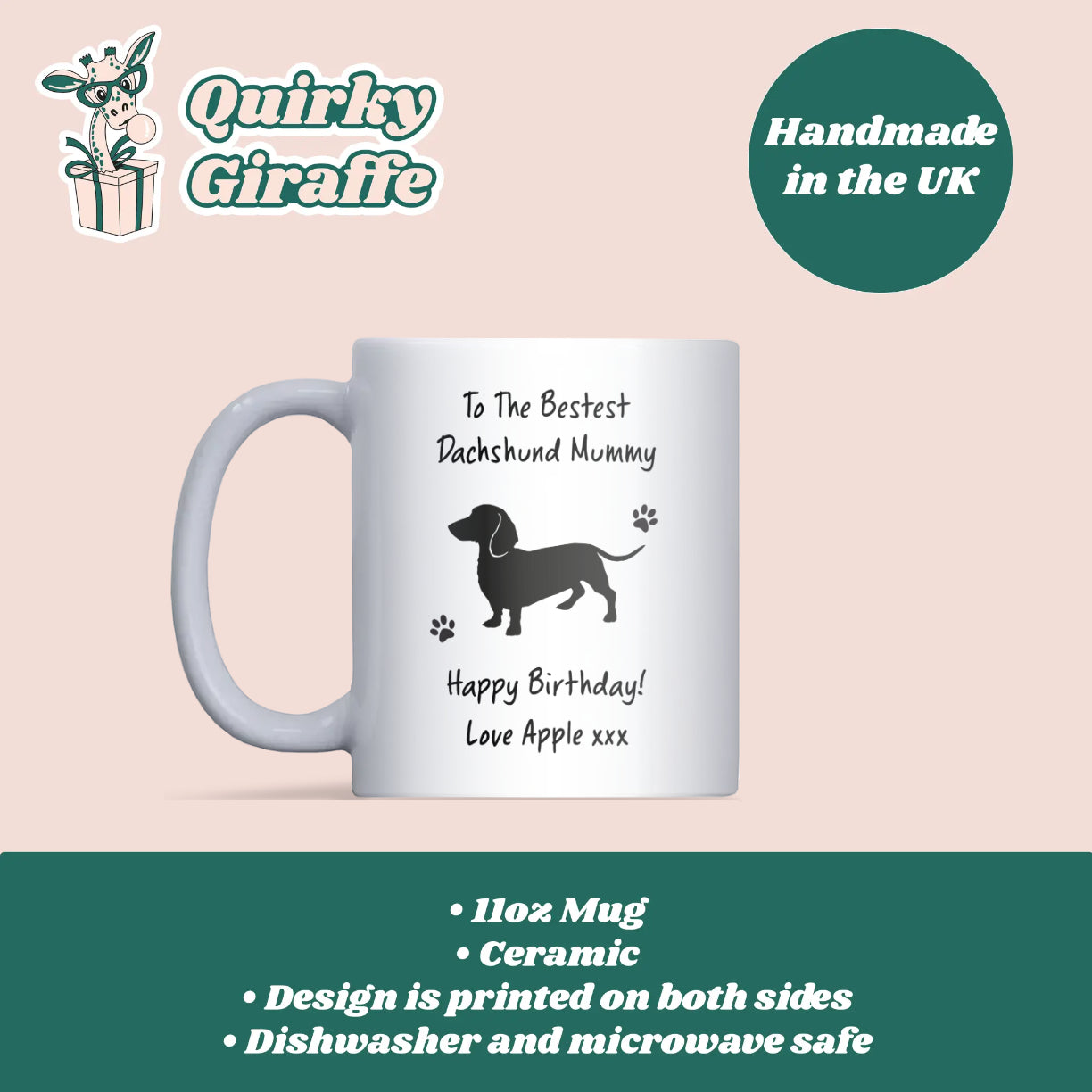 Personalised Dachshund Mummy Mug, Happy Birthday Gift from Dog, Dachshund Owner Present, Sausage Dog Birthday Mug, Sausage Dog Mum Gift