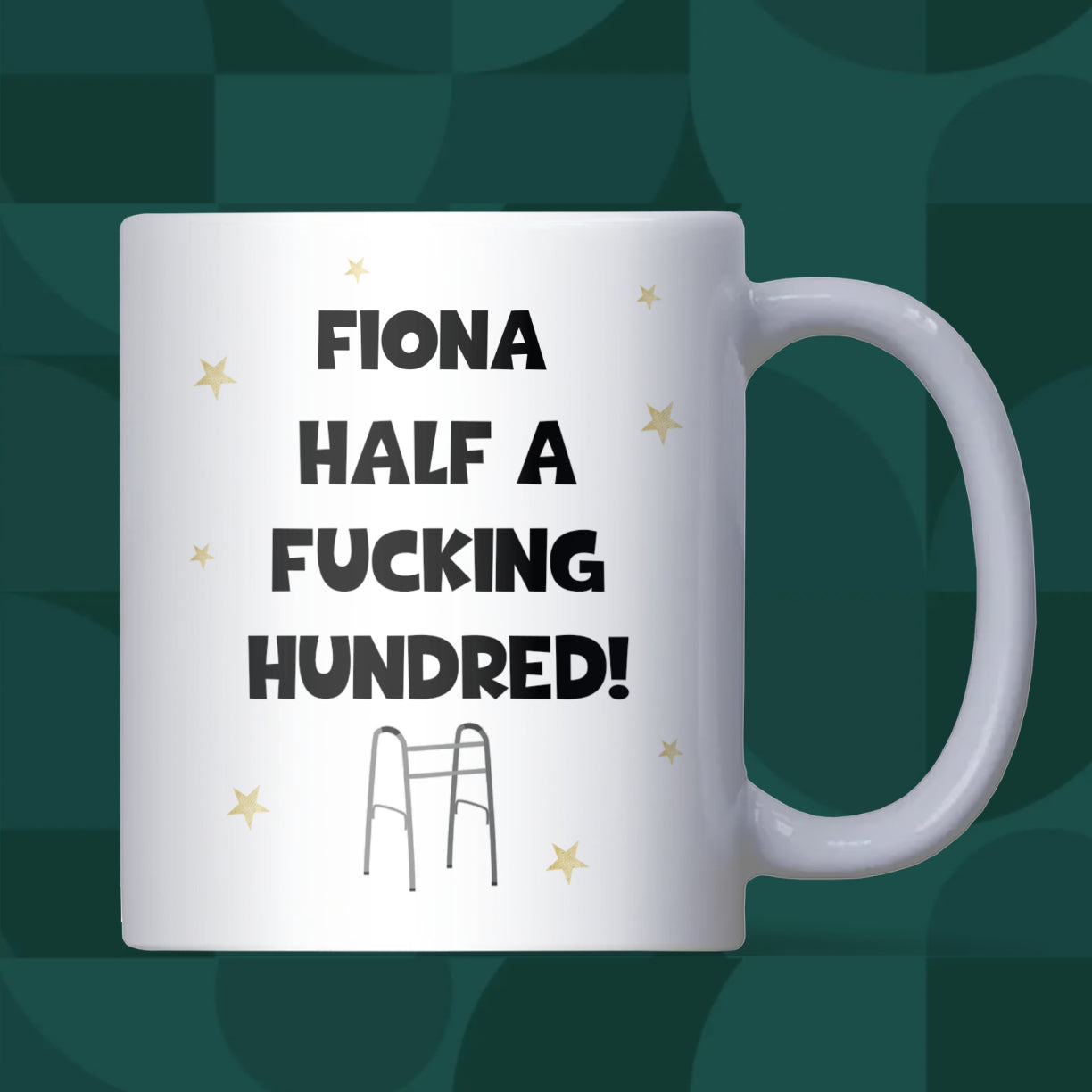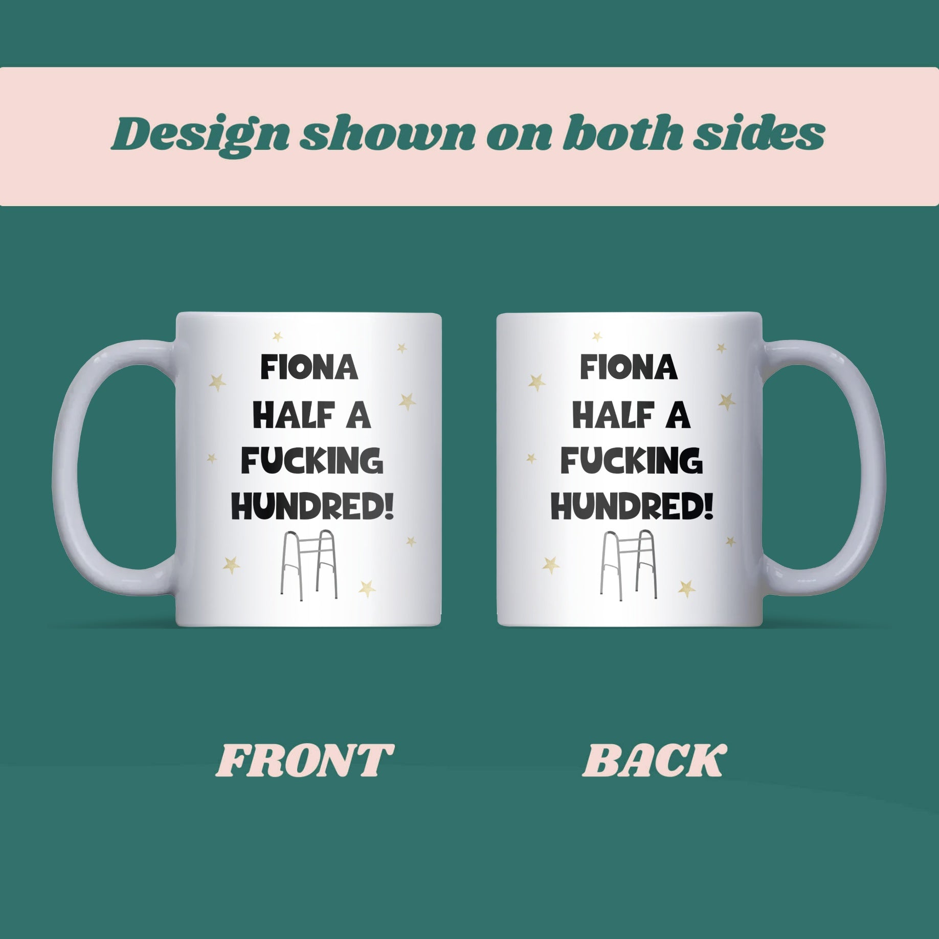 Personalised Half Way to 100 Mug, Funny 50th Birthday Gift, Milestone Fiftieth Birthday Present, Half a Hundred 50th Birthday Joke Present