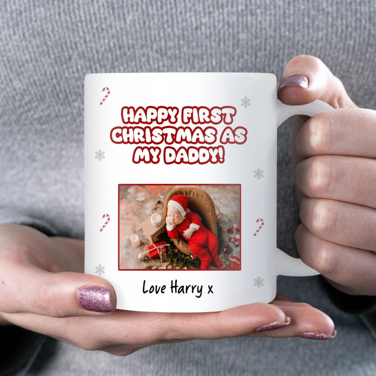 Personalised Photo Happy First Christmas As My Daddy Mug, Baby’s First Christmas Gift for Dad, Daddy Keepsake from Baby, Husband’s First Christmas as a Dad, New Dad Christmas Gift