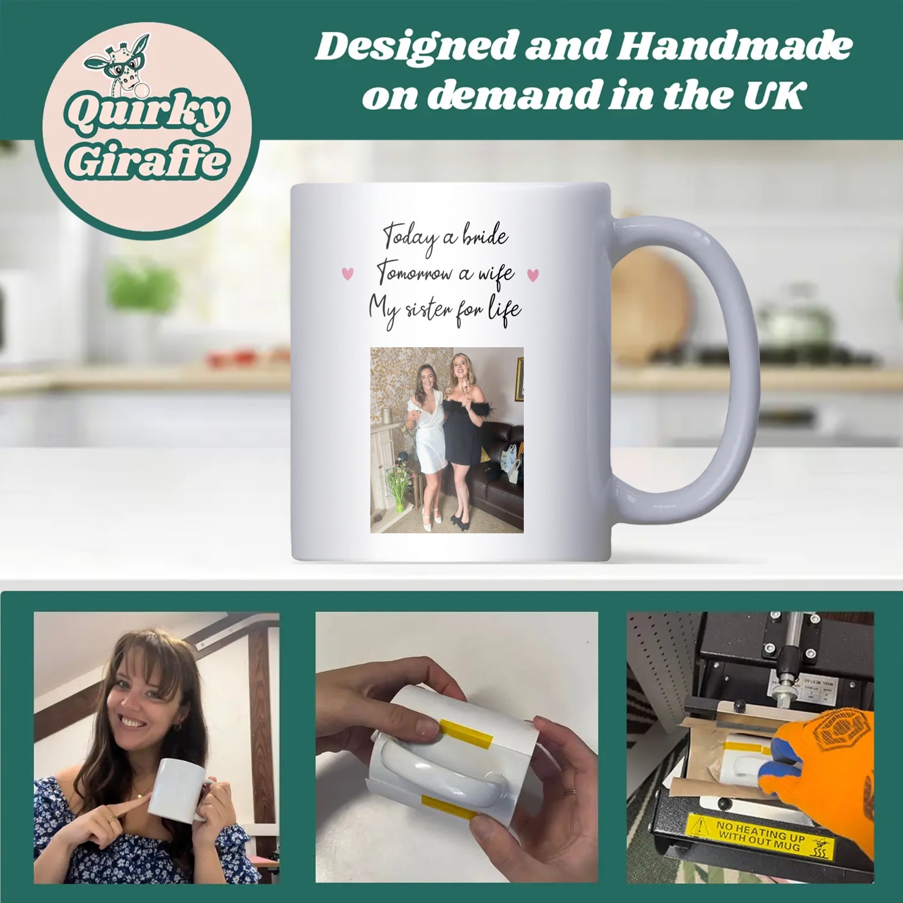 Personalised Photo Wedding Day Mug for Sister, Wedding Day Gift from Sister, Bride Keepsake from Sibling, Sentimental Wedding Gift to Sister