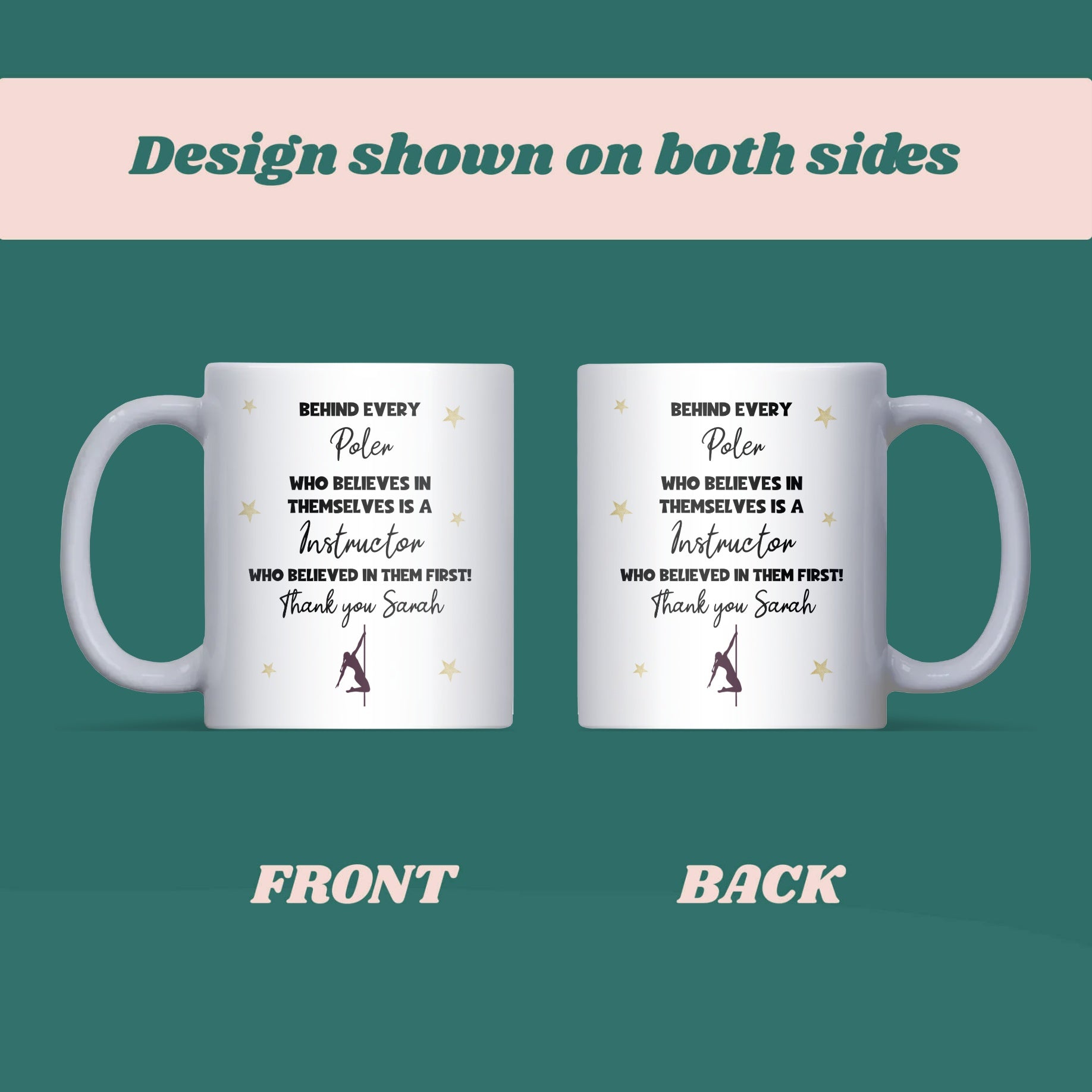 Personalised Pole Instructor Thank You Mug, Behind Every Poler Mug, End of Term Pole Fitness Coach Gift, Pole Dance Teacher Present