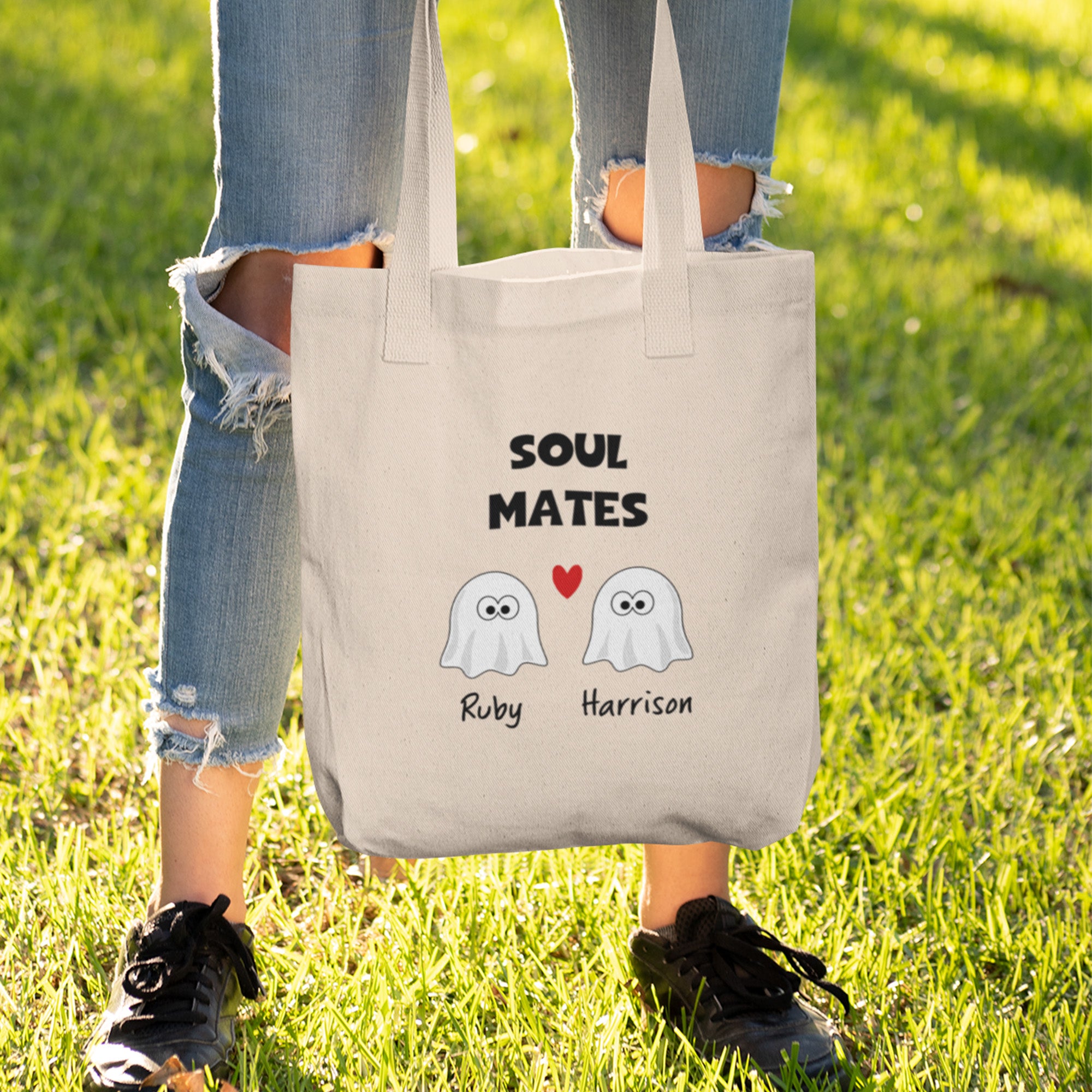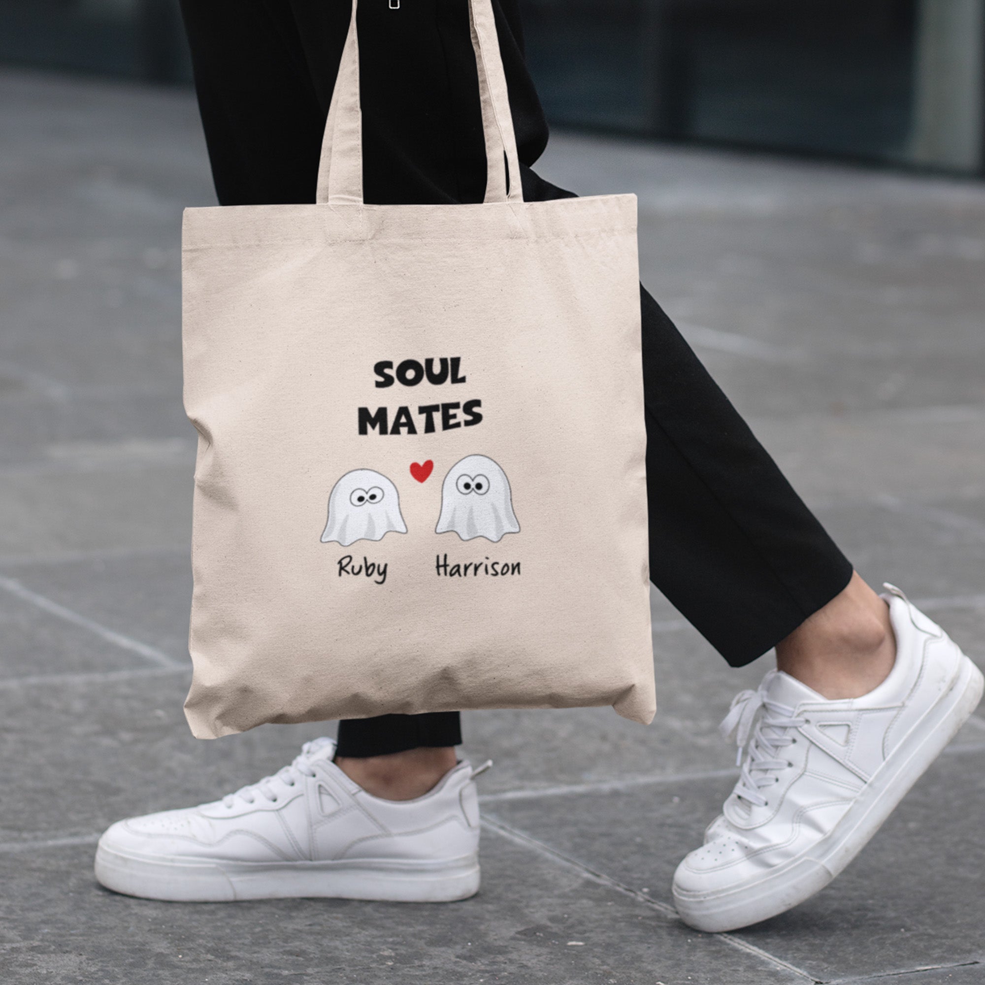 Personalised Soul Mates Tote Bag, Custom Ghost Couple Halloween Tote, Cute Halloween Couple Gift for Girlfriend, Boo Basket Gift for Wife
