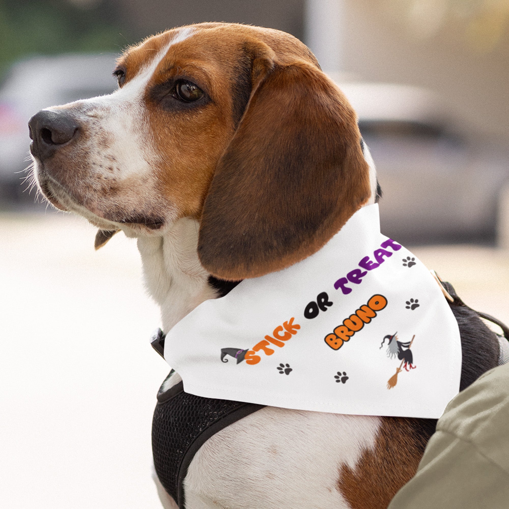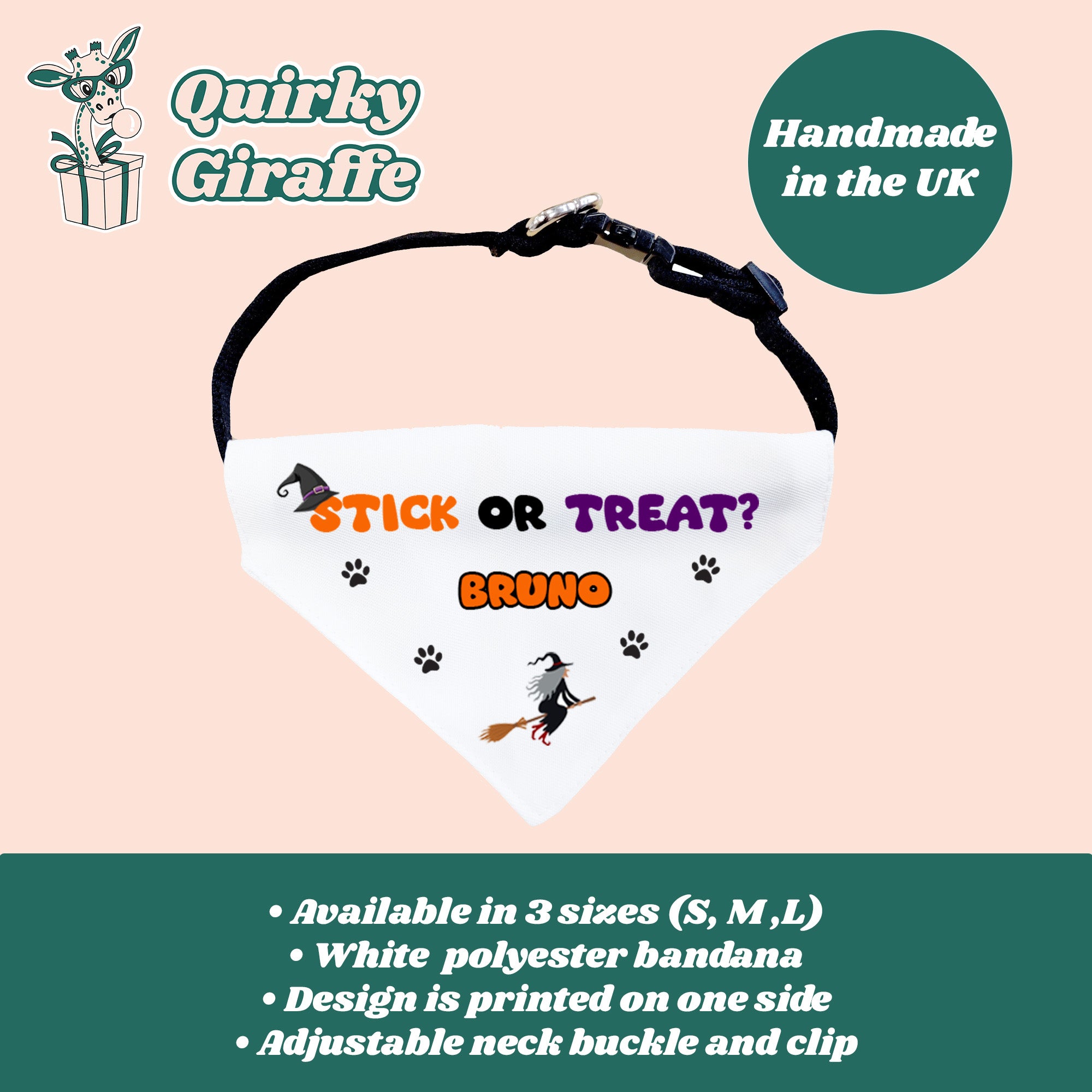Personalised Stick or Treat Funny Halloween Dog Bandana, Cute Pumpkin Dog Outfit, Funny Halloween Dog Costume, Halloween Pet Accessory