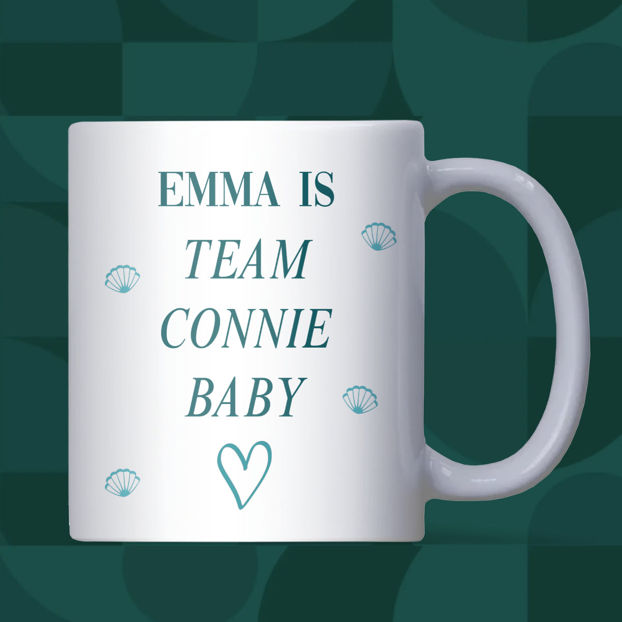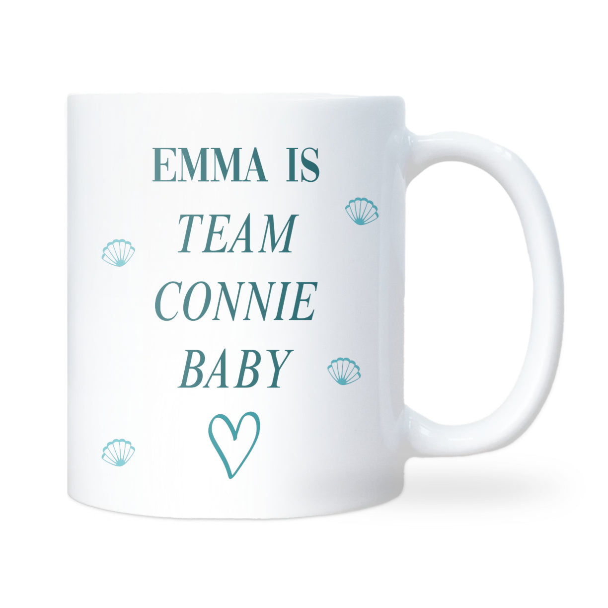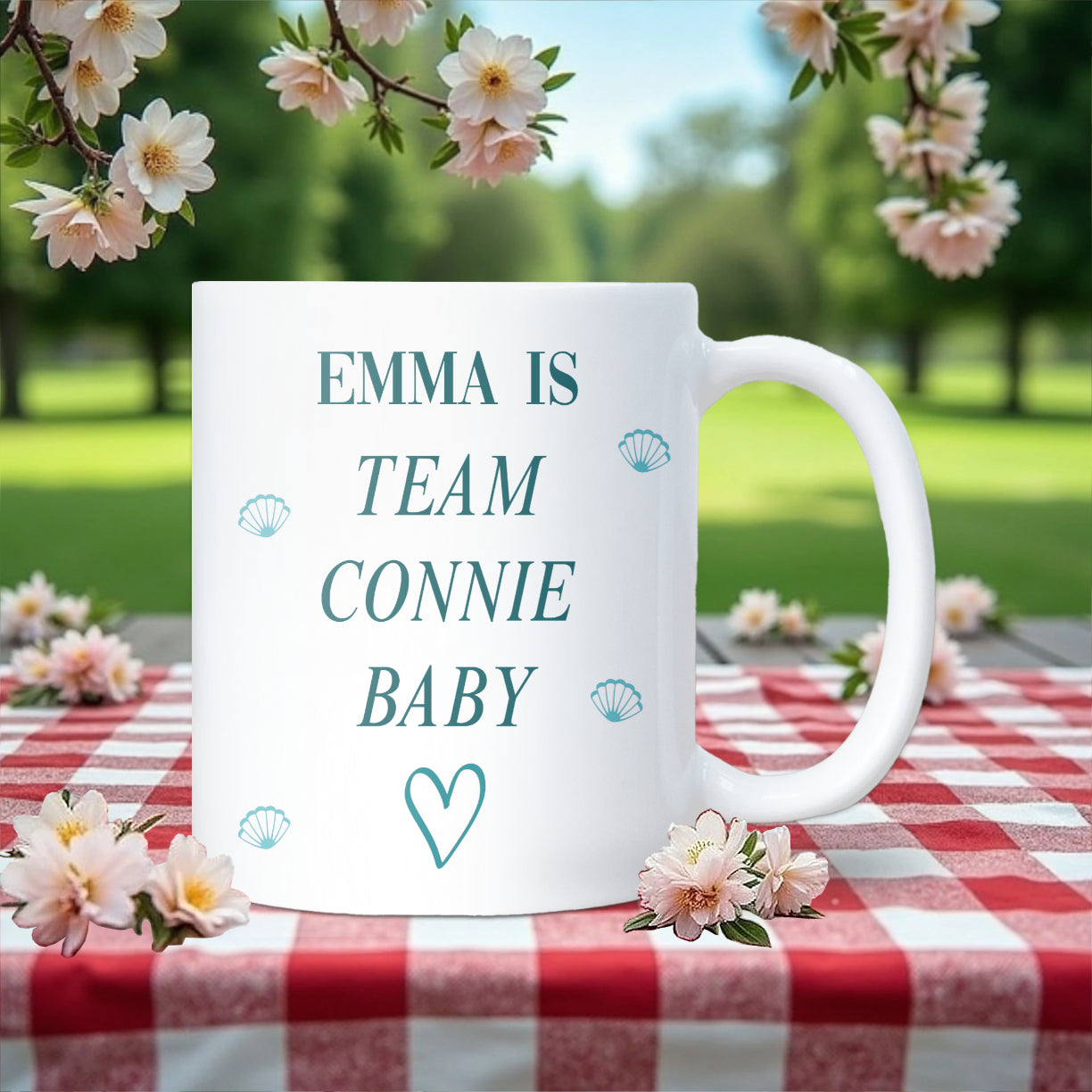 This personalised Team Connie Baby mug is the perfect gift for Conrad Fisher fans! Add your name for a unique Cousins Beach keepsake inspired by the summer romance series. A fun BookTok-inspired present for birthdays, Christmas, or any special occasion.