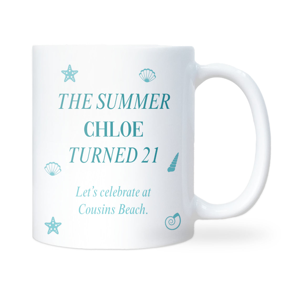 Celebrate turning 21 with this personalised TSITP-inspired mug reading “The Summer [Name] Turned 21.” Perfect for BookTok fans, Cousins Beach lovers, and Conrad or Jeremiah Fisher supporters, this keepsake mug makes a sweet 21st birthday gift for daughters, best friends, or girlfriends.