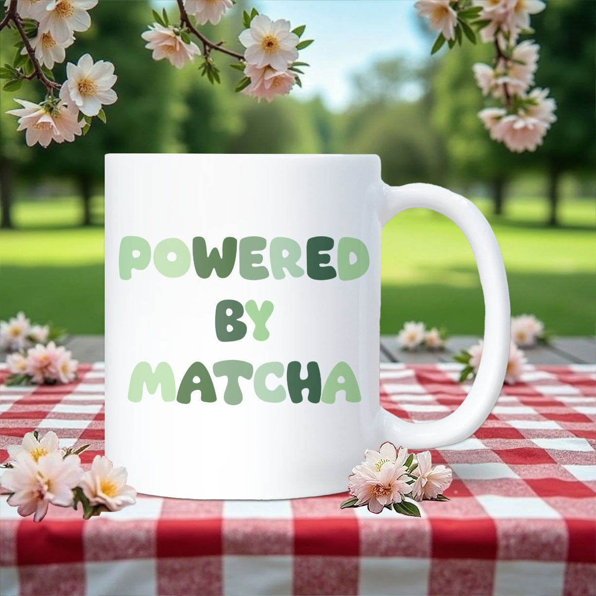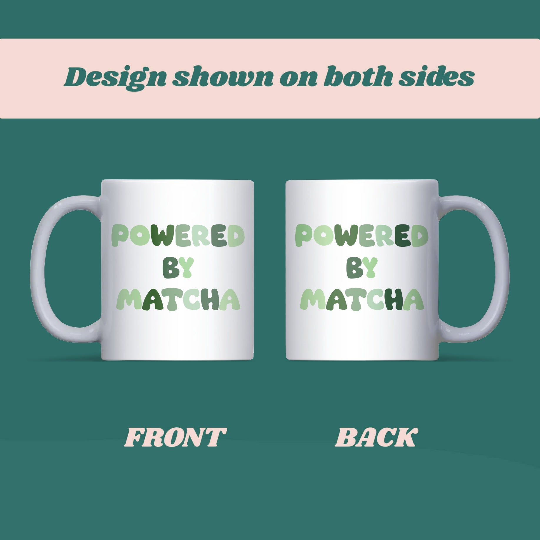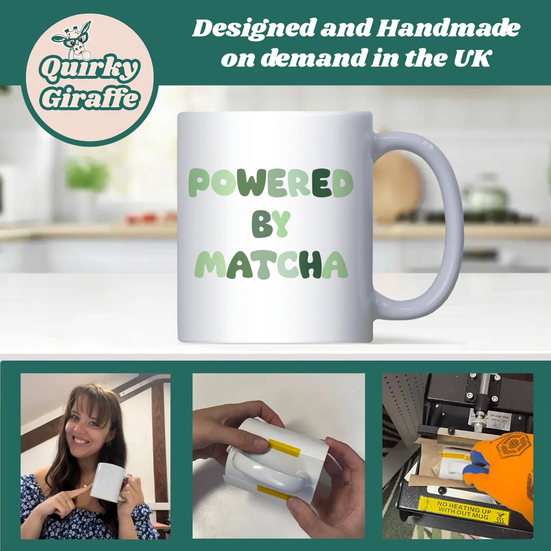 Powered by Matcha Mug, Funny Matcha Latte Mug, Matcha Lover Gift, Matcha Secret Santa Mug, Cute Matcha Christmas Cup, Matcha Birthday Gift