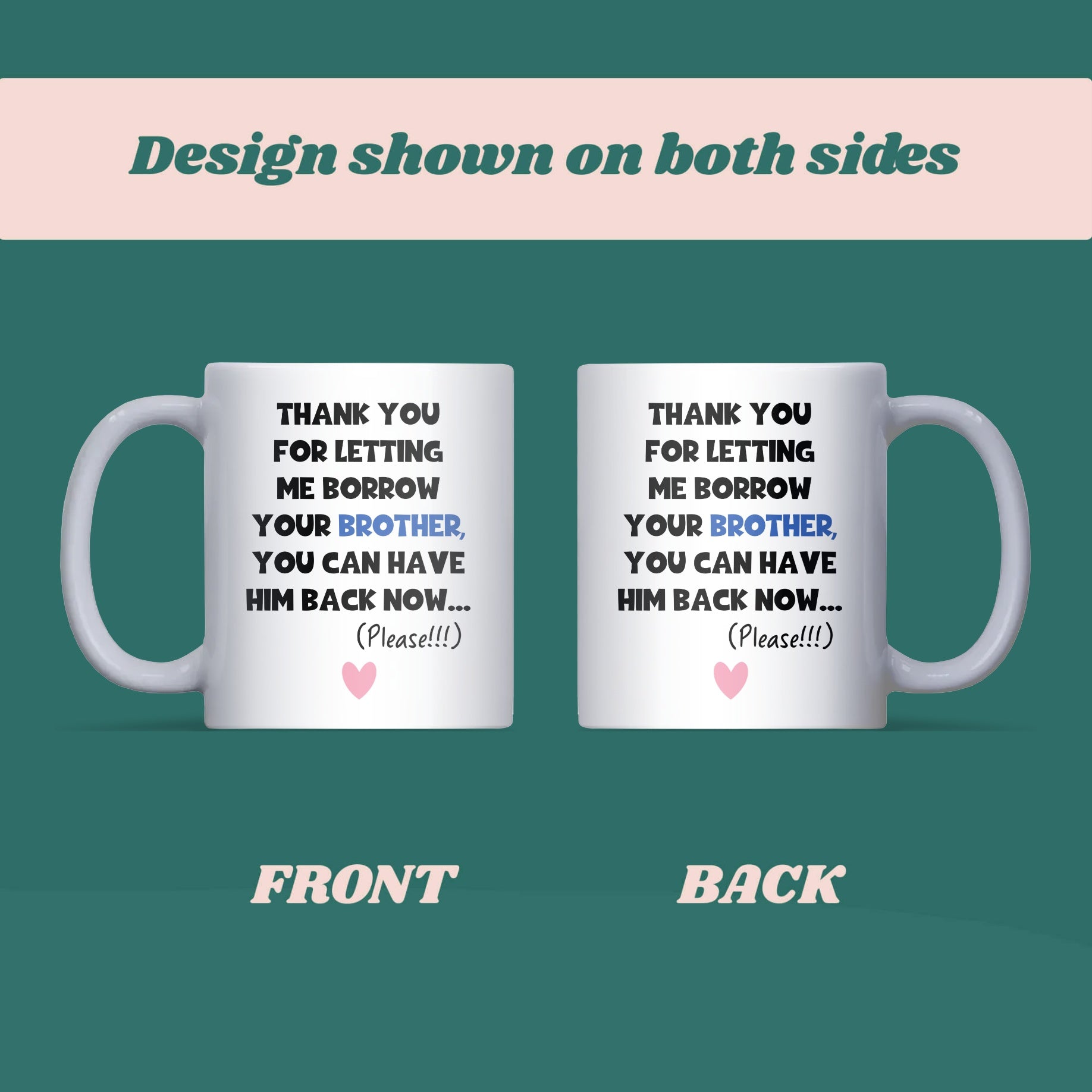 Thanks for Letting Me Borrow Your Brother Mug, Funny Sister-in-Law or Brother-in-Law Gift, Christmas or Birthday Joke Mug for Sibling in Law
