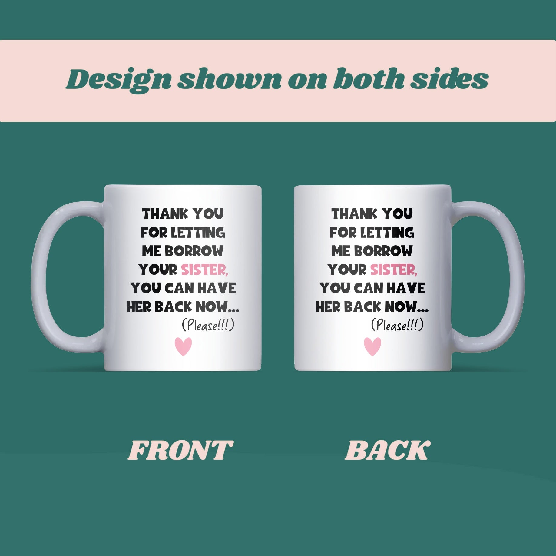 Thanks for Letting Me Borrow Your Sister Mug, Funny Brother-in-Law Gift, Sister-in-Law Christmas Joke Gift